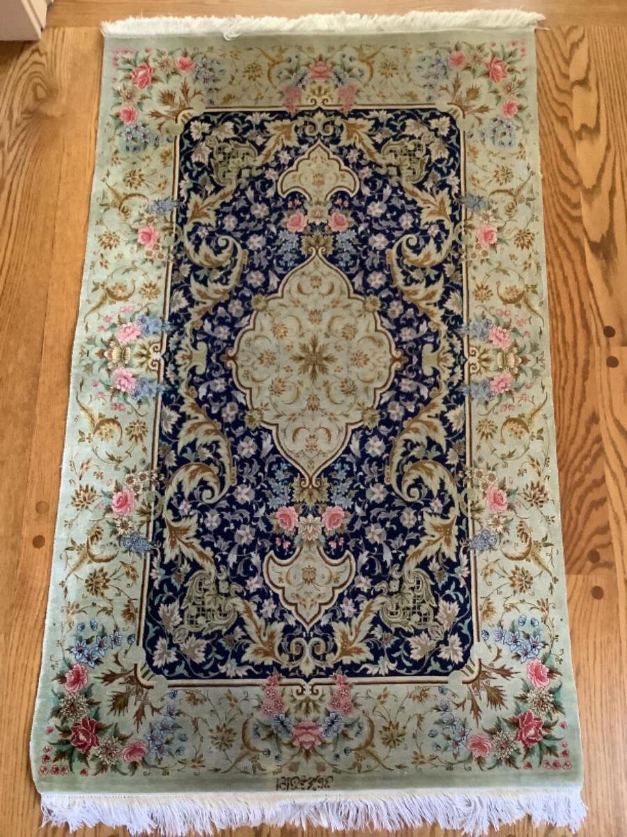 E589 Persian Silk Hand knotted Signed Ghoum Rug