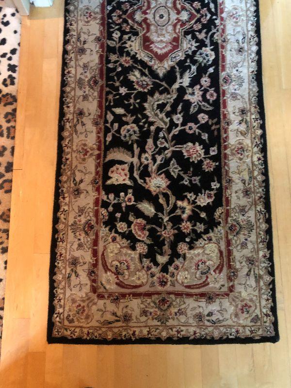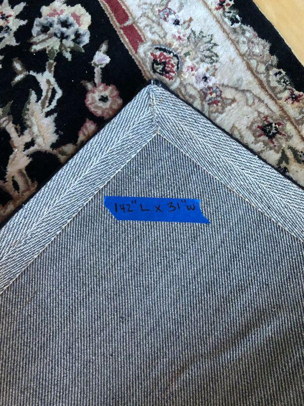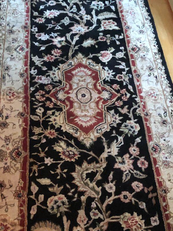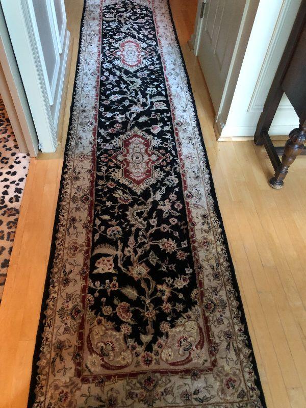Beautiful Wool hallway runner that measures around 12 ft by 2.5 feet. Please see pics for condition and exact measurements.