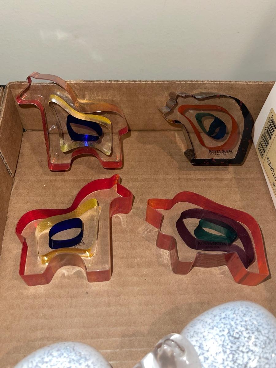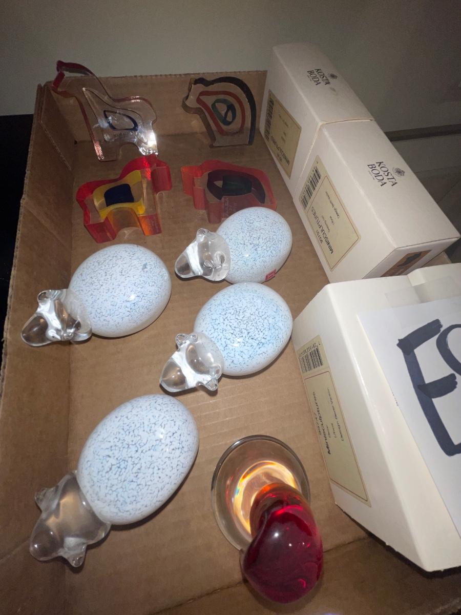 E8-Glass sheep, and Kosta Boda mini sculptures
