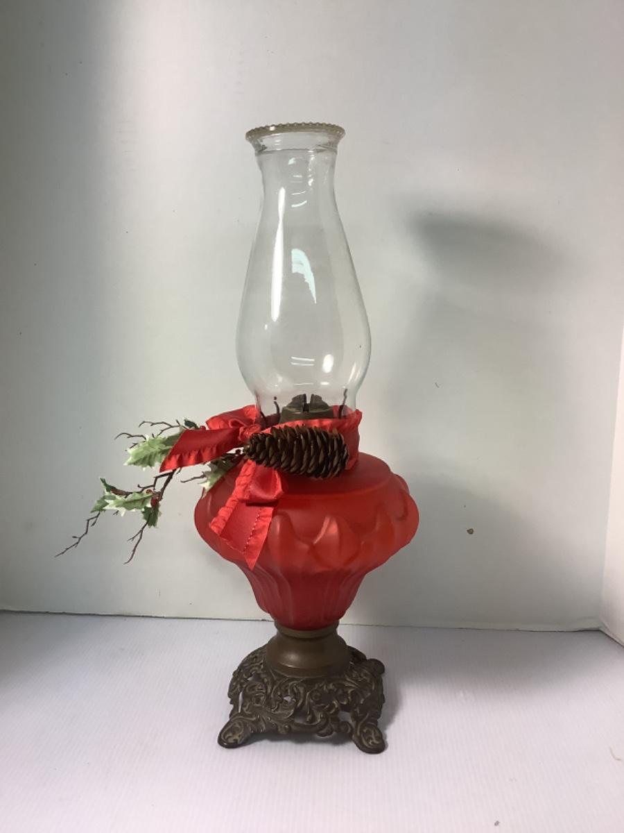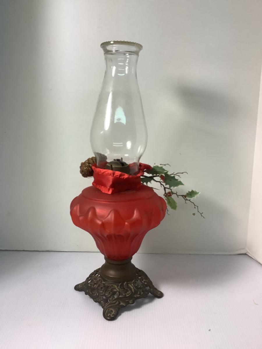 E928 Vintage Red Ruby Satin Glass Oil Lamp