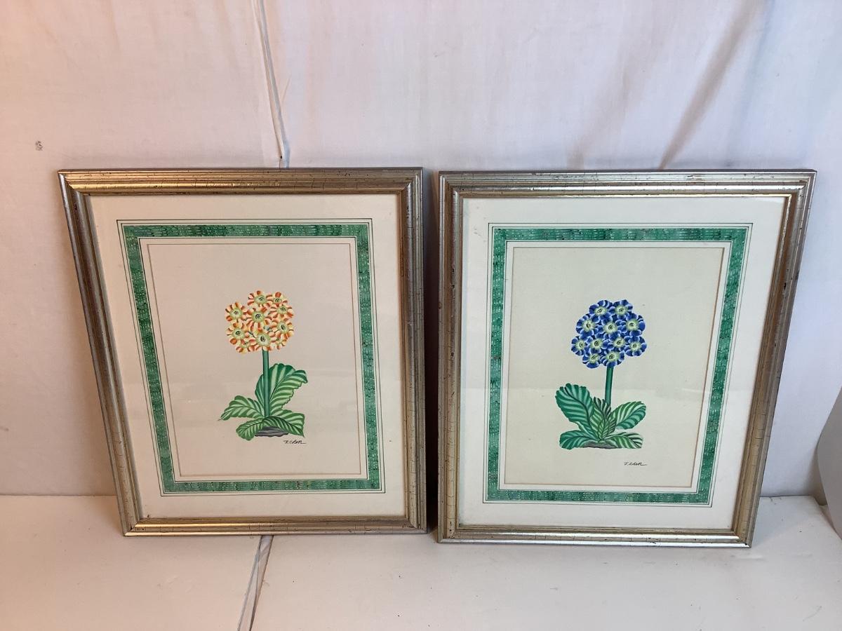 E938 Pair of Handpainted on Silk Chelsea House Floral Wall Art