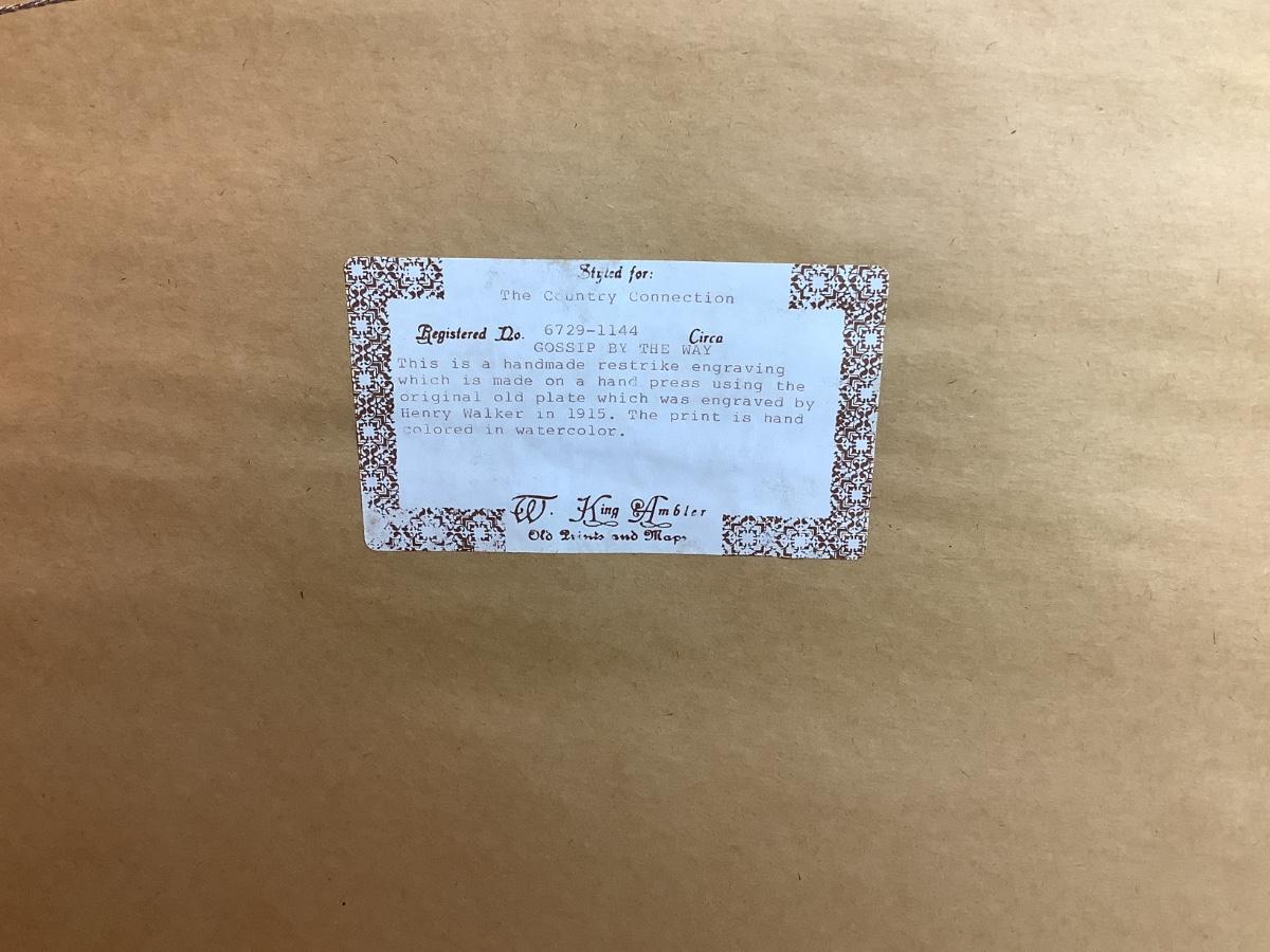 E940 Signed Framed Restrike Engraving "A Gossip by the Way" Henry G. Walker