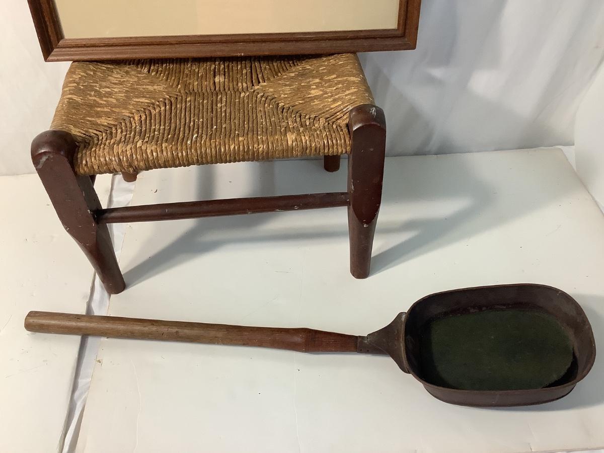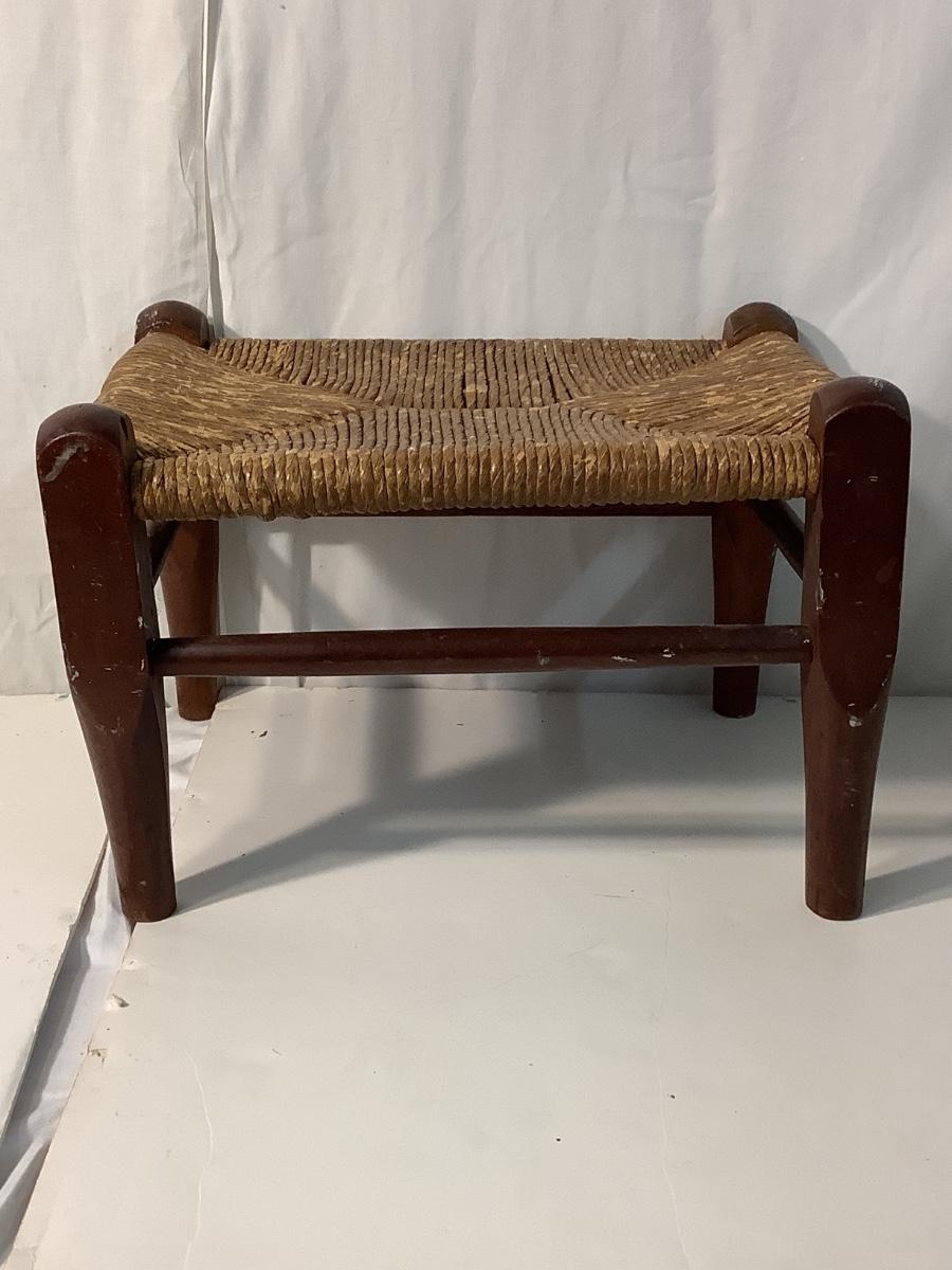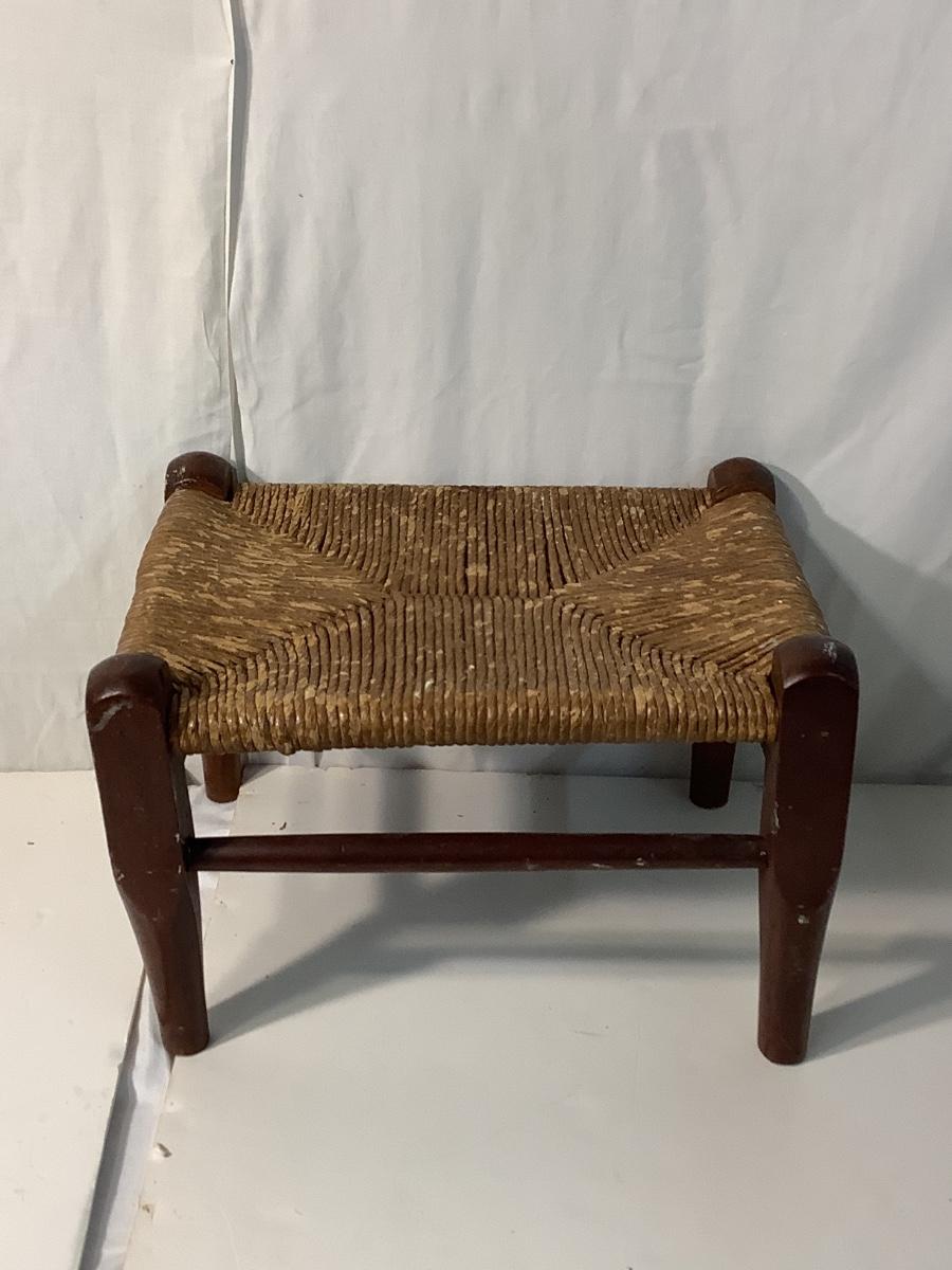 E953 Vintage Wooden Rush seat Stool , Bed warmer, framed print