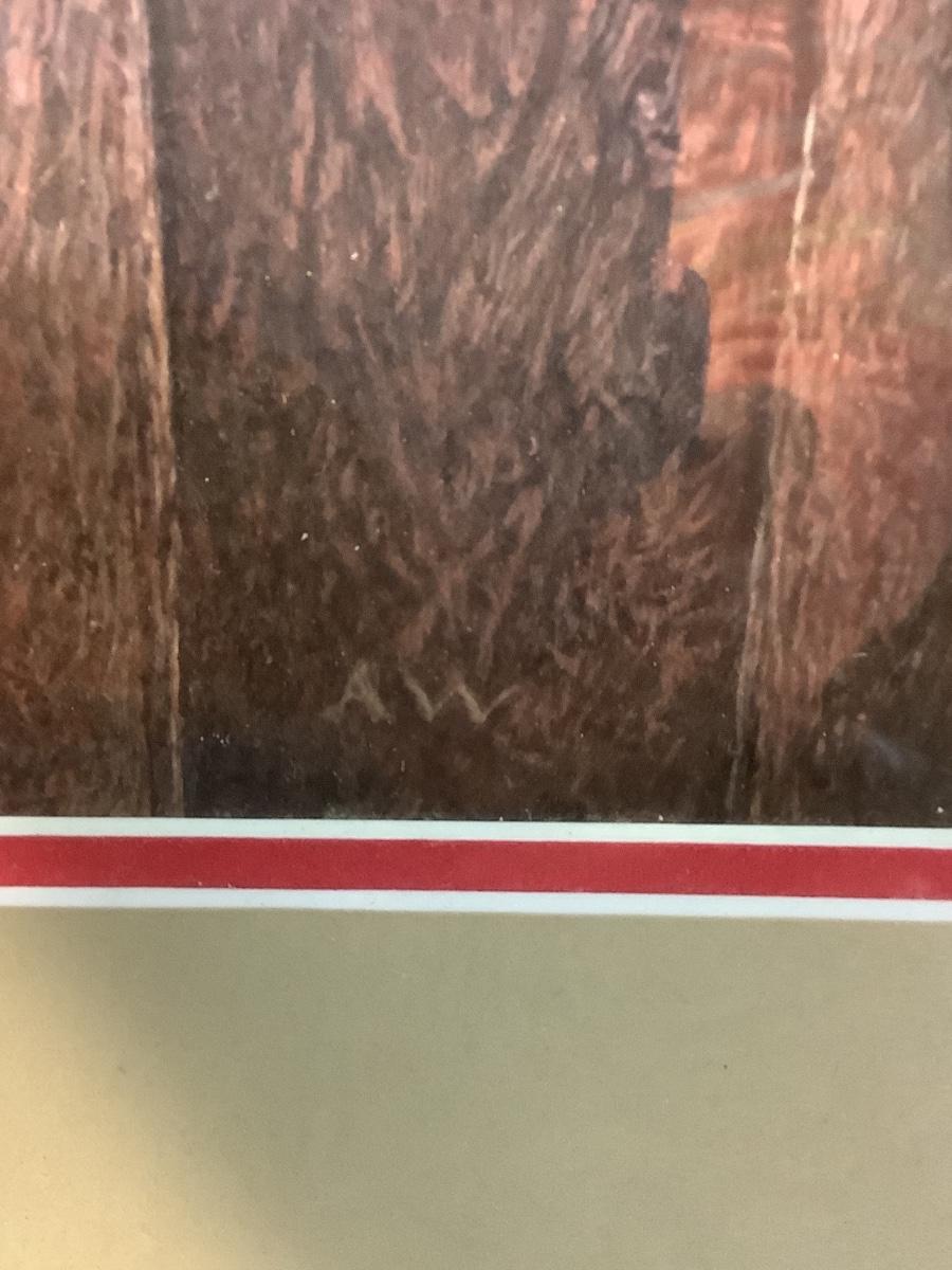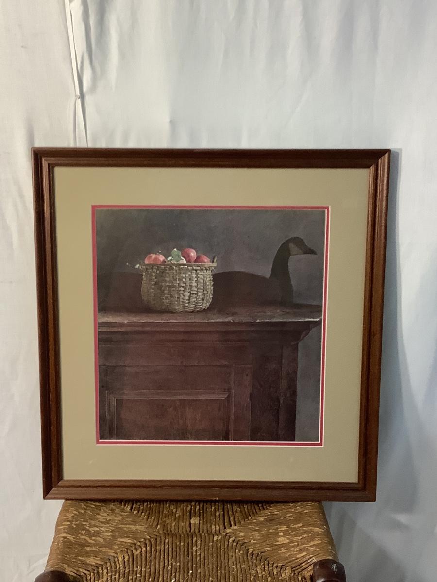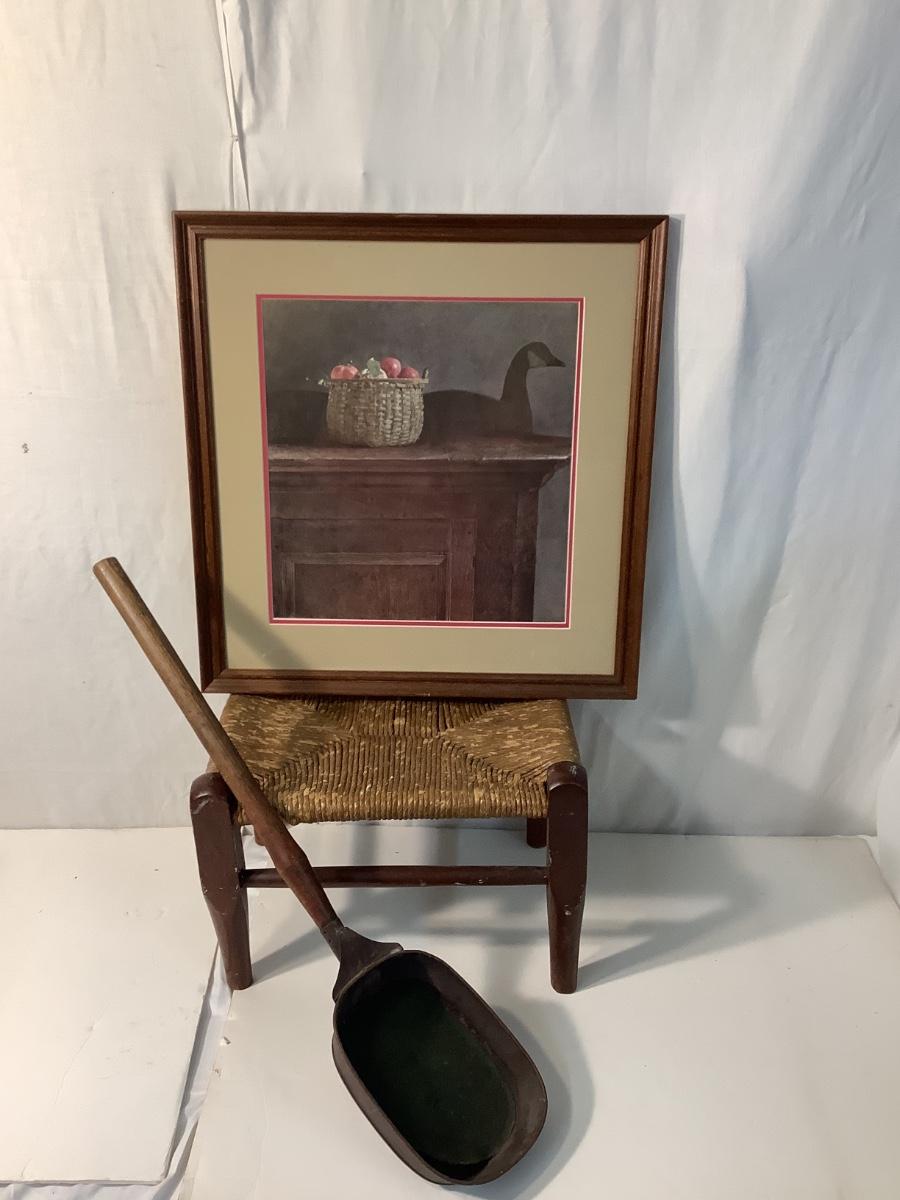 E953 Vintage Wooden Rush seat Stool , Bed warmer, framed print