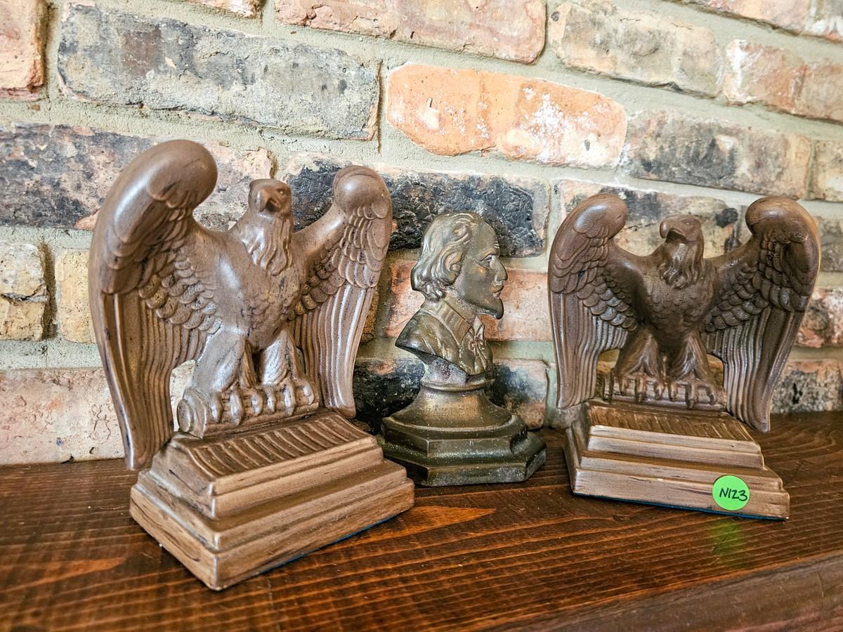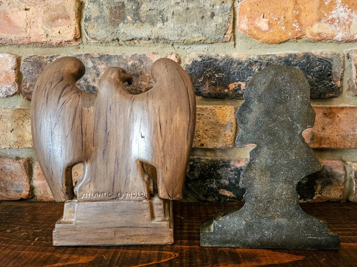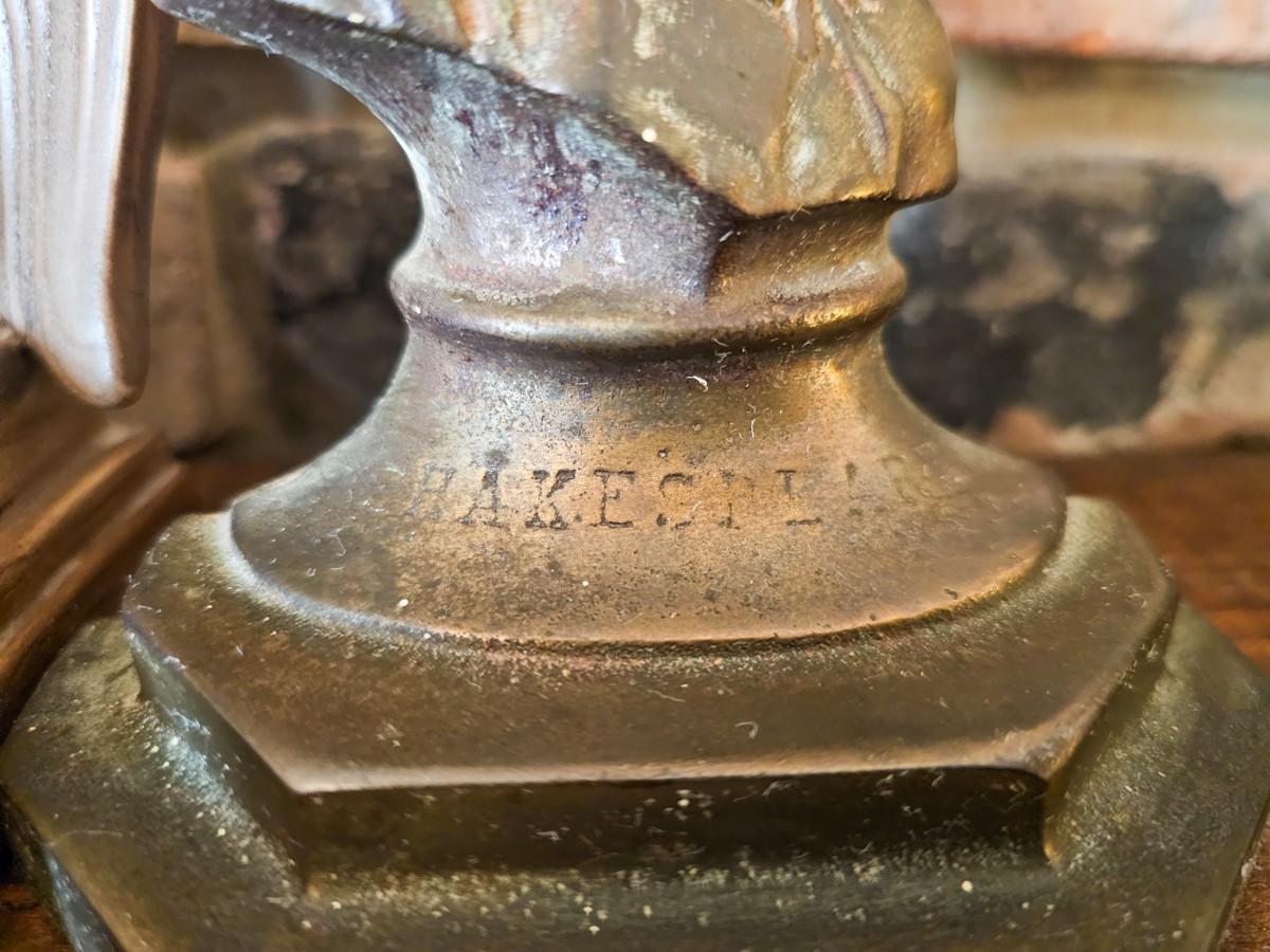 Eagles are ceramic, made from an Atlantic Mold. Shakespeare is cast metal
