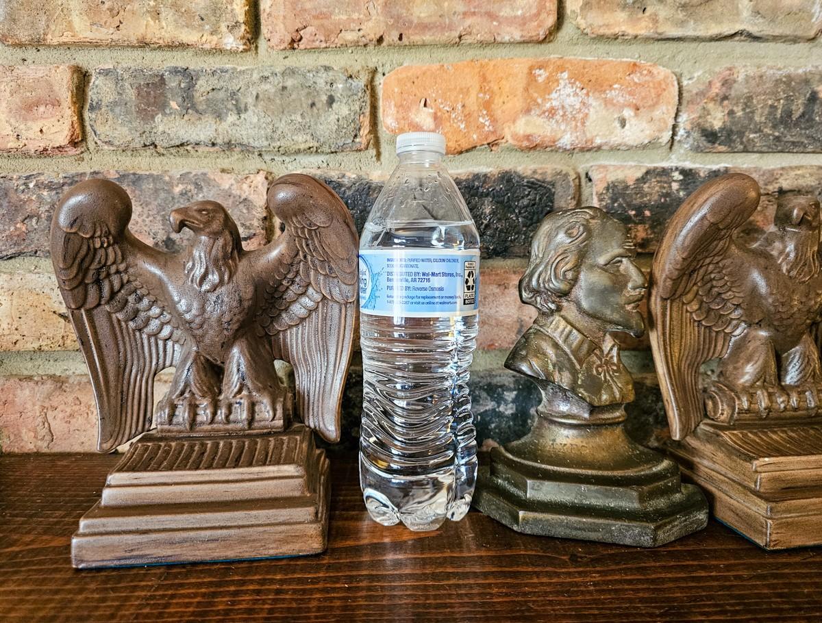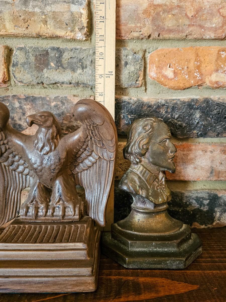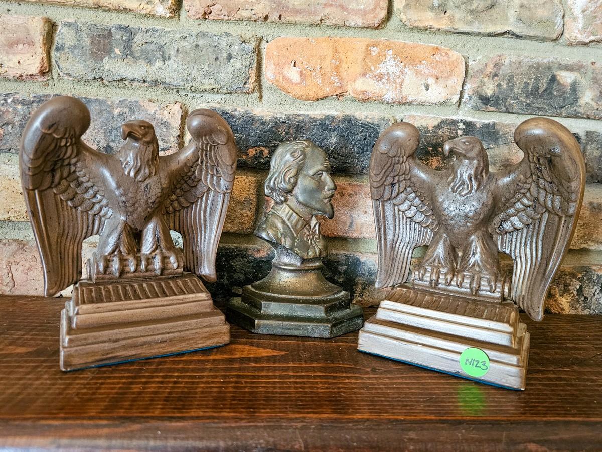 Eagles are ceramic, made from an Atlantic Mold. Shakespeare is cast metal