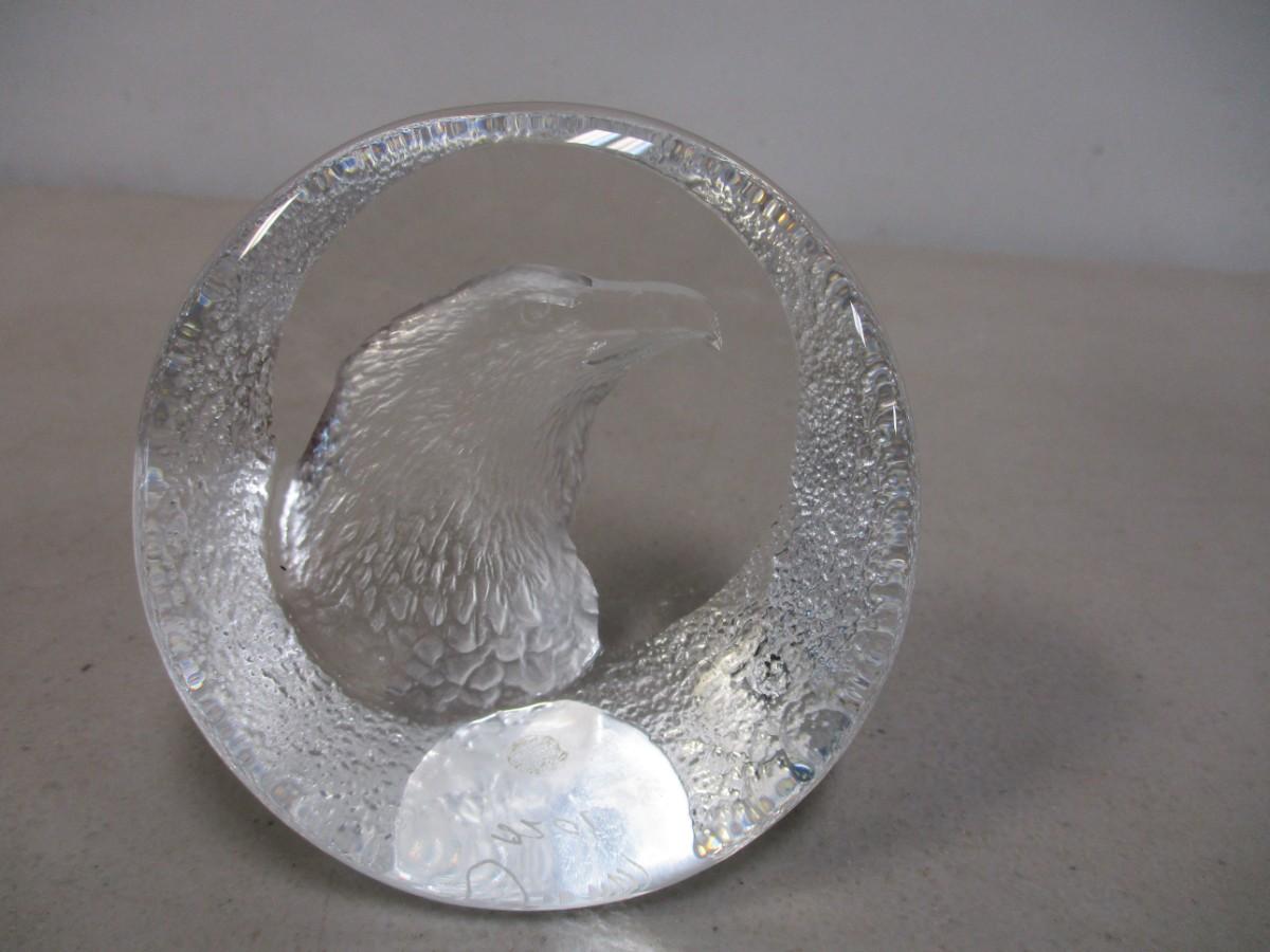 Eagle Clear Paperweight Signed
