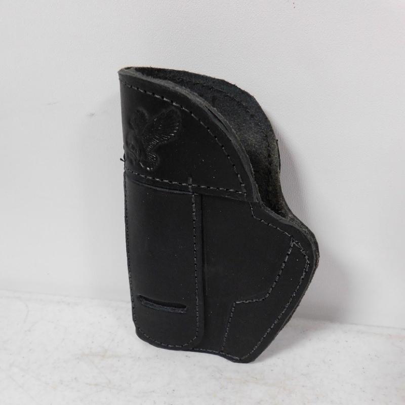 Eagle Embossed Leather Hip Pistol Holder with Belt Clip. Appears to be new.