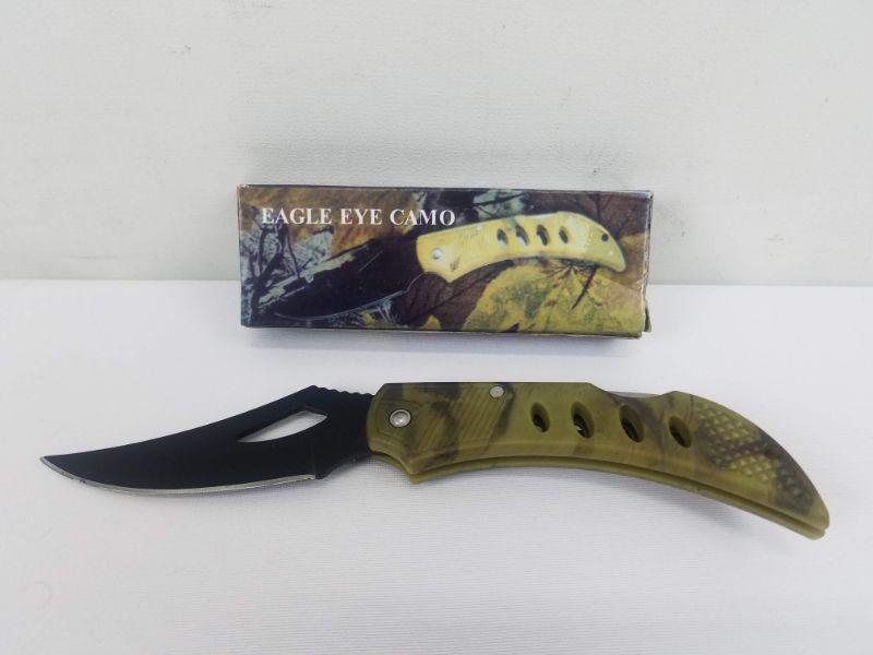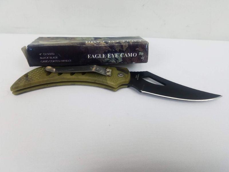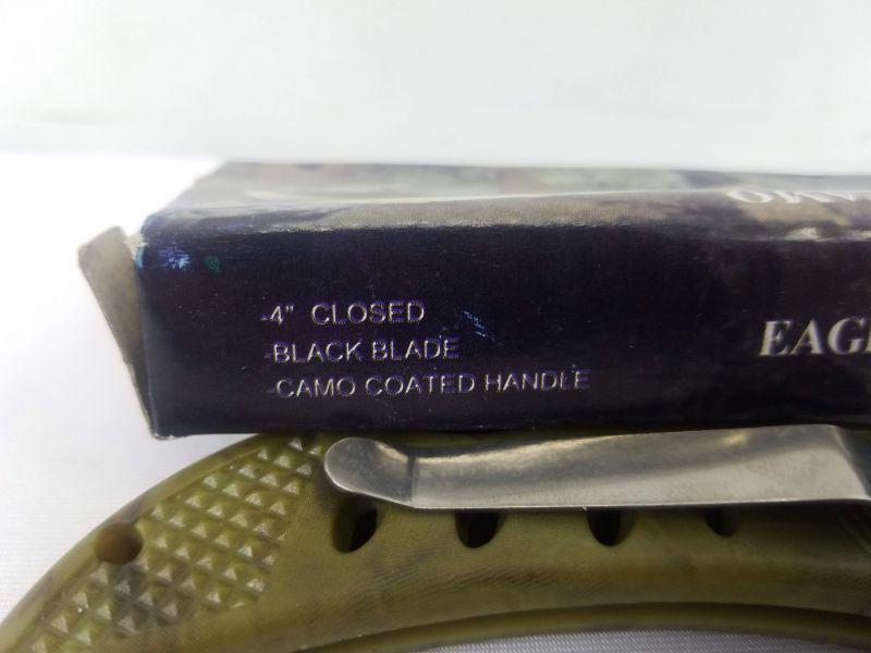 Eagle Eye Camo Knife: 4", Black Blade, Camo Coated Handle - New