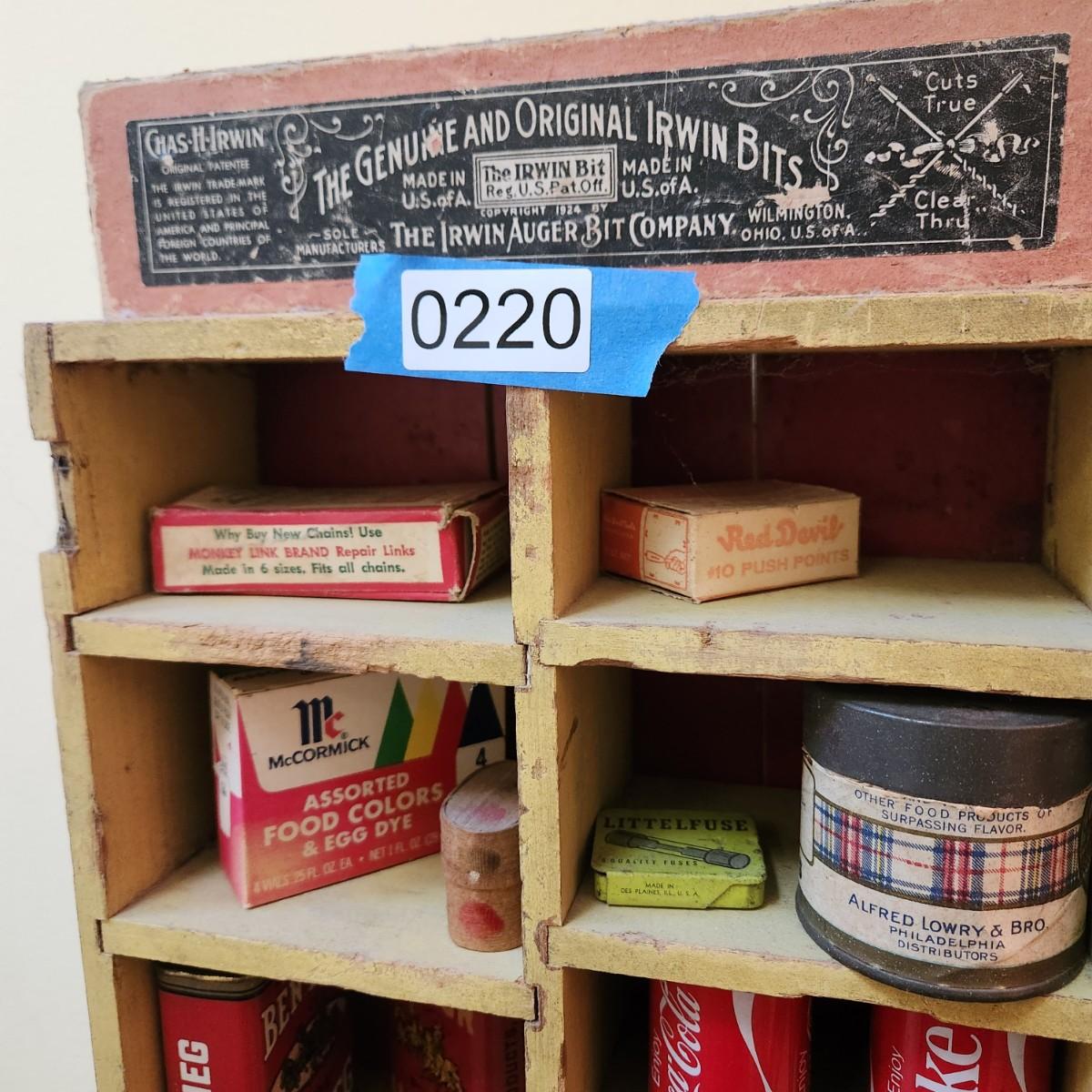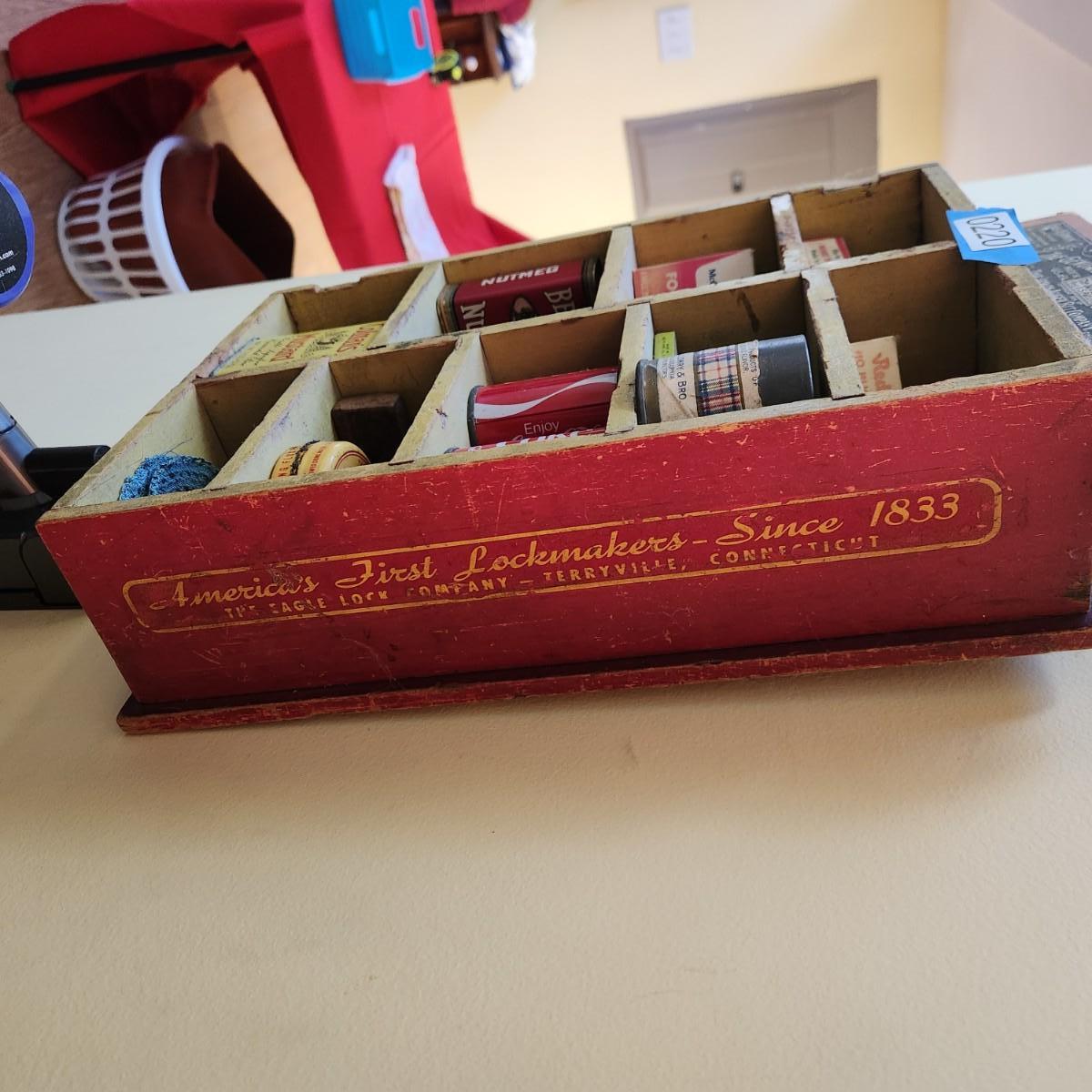 Eagle Lock Co Wooden Crate Filled w collectables Irwin Bit, Ben-Hur McCormick Spices