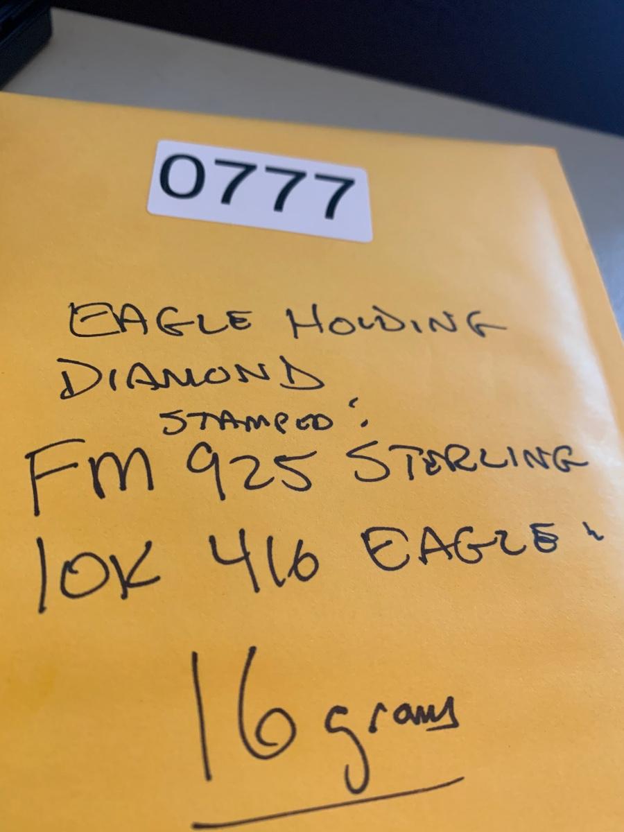 Eagle On Diamond Men’s Ring Sterling w 10k Gold Wash size 13