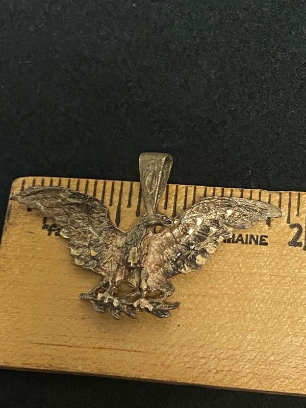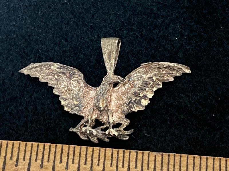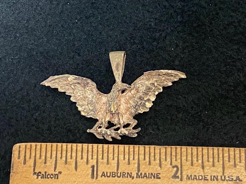 Eagle Pendant. Has a multitone look to it. Metal unknown, no markings noticed. Looks vintage. About 1 7/8" wide.