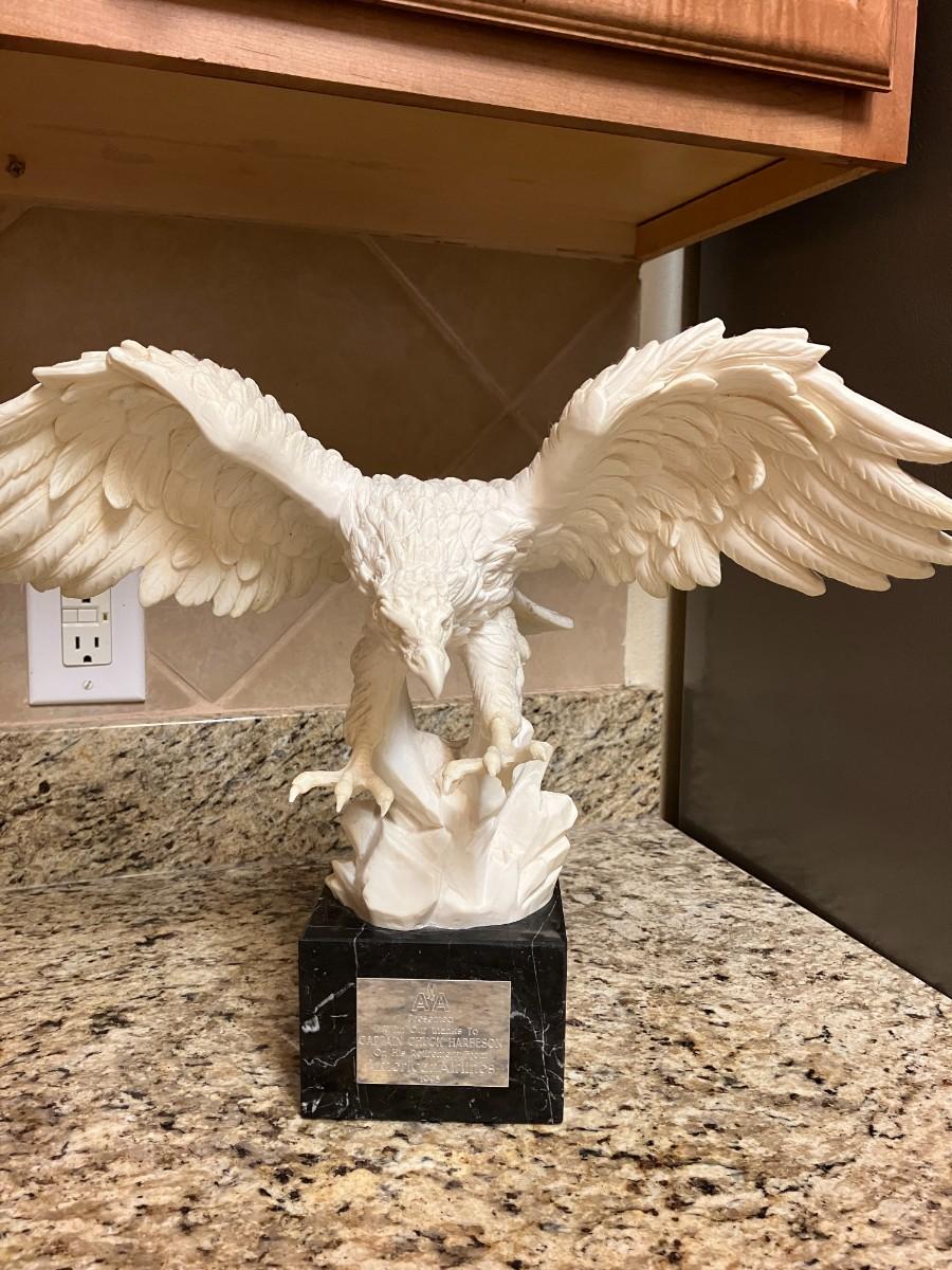 Eagle plaster statue/award with name plate. Name plate can be removed.