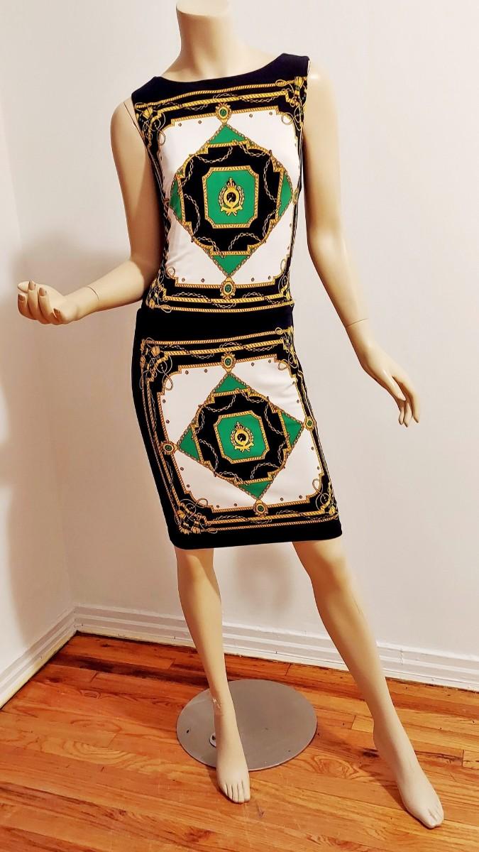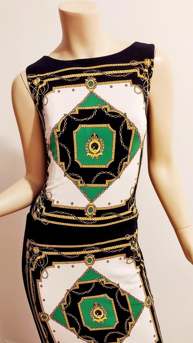 A really Beautiful dress by ralph lauren , Amazing Bold coloration Baroqe Braided Print Graphics.