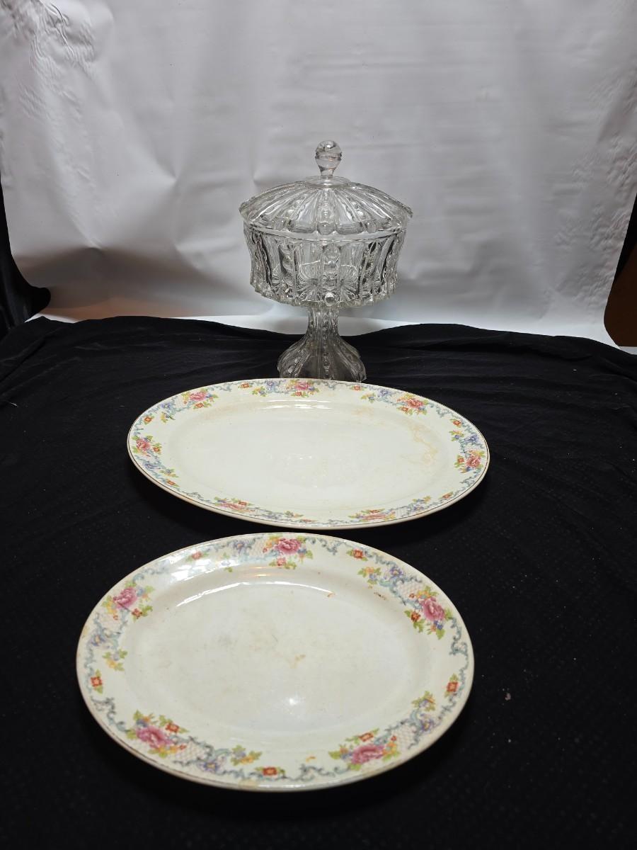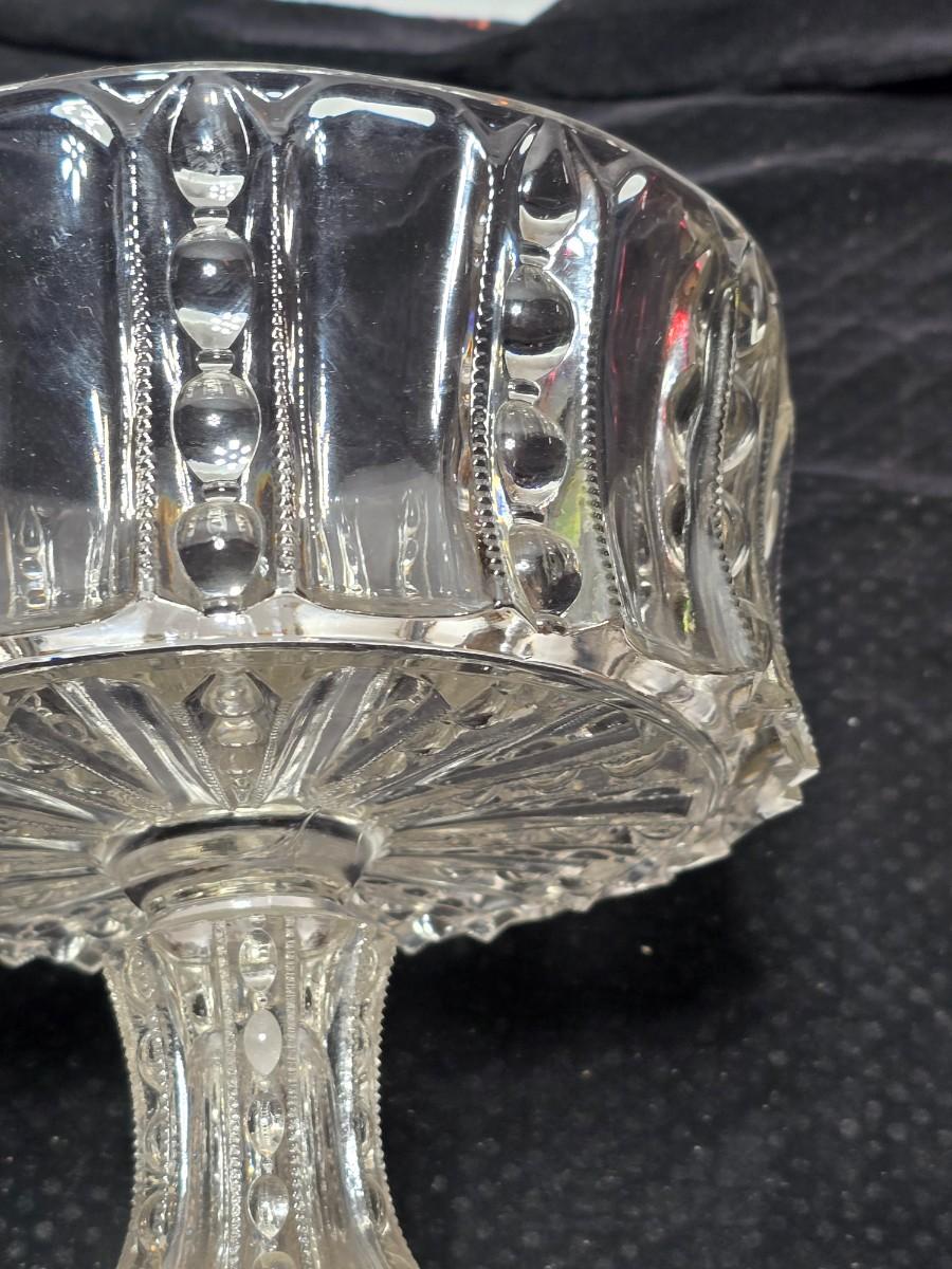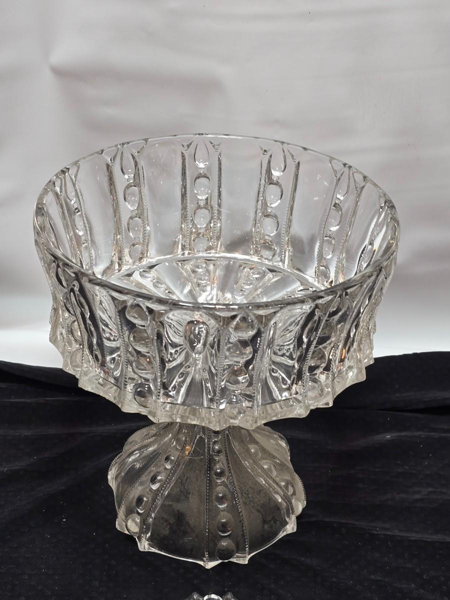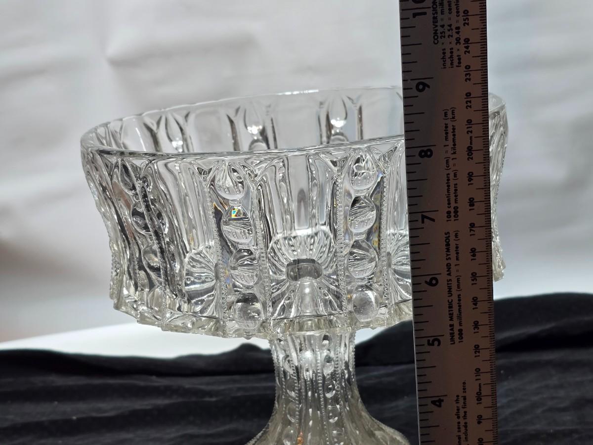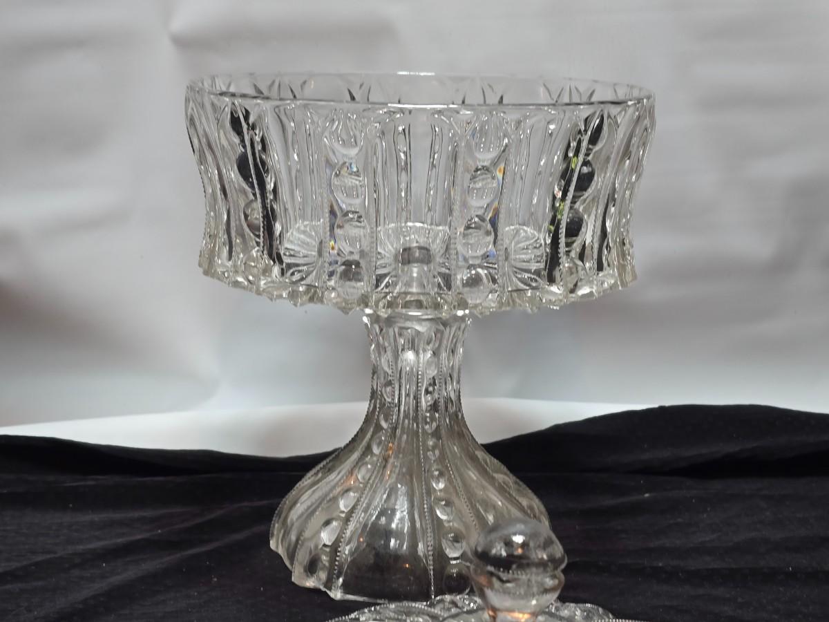 Glass Column Pedestal Candy Dish/Footed Compote with two Vintage Steubenville platters