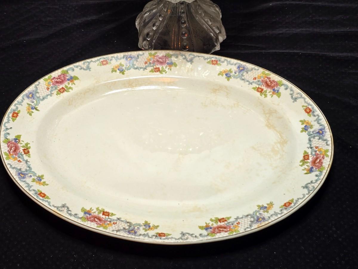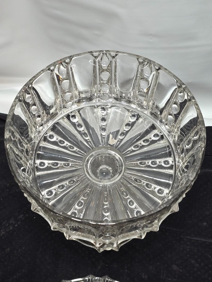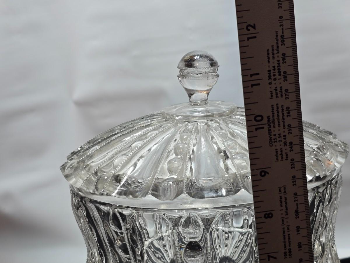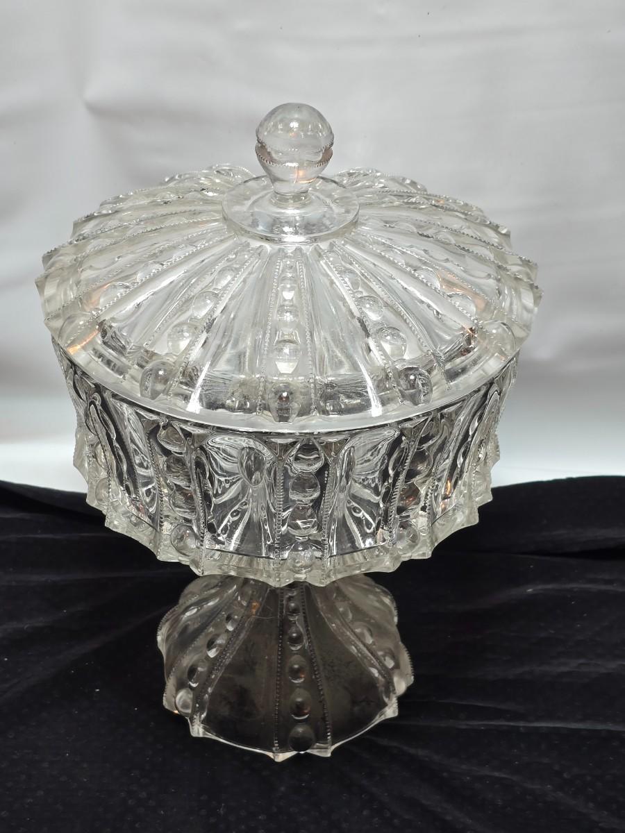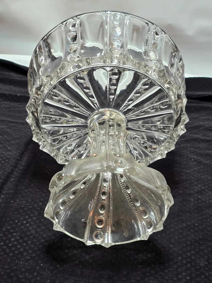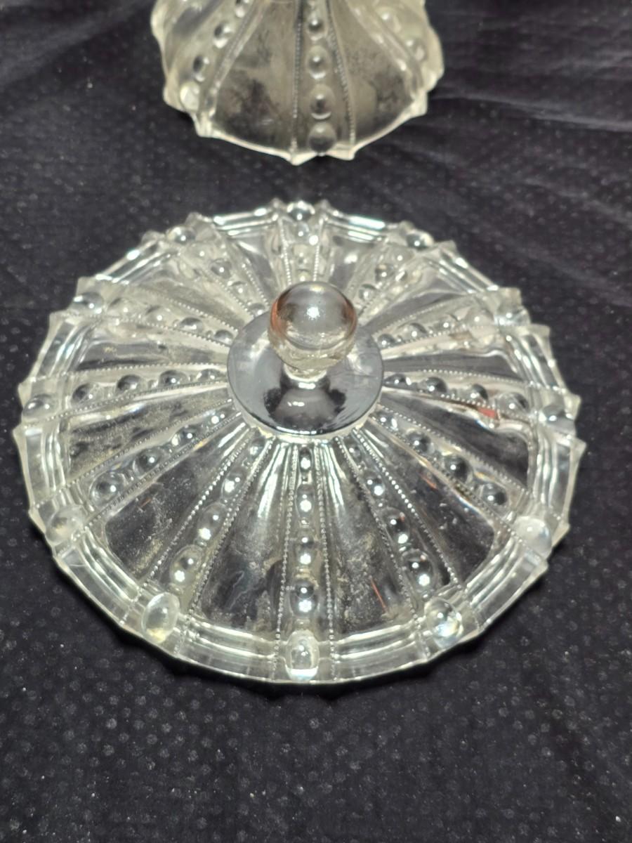 Glass Column Pedestal Candy Dish/Footed Compote with two Vintage Steubenville platters