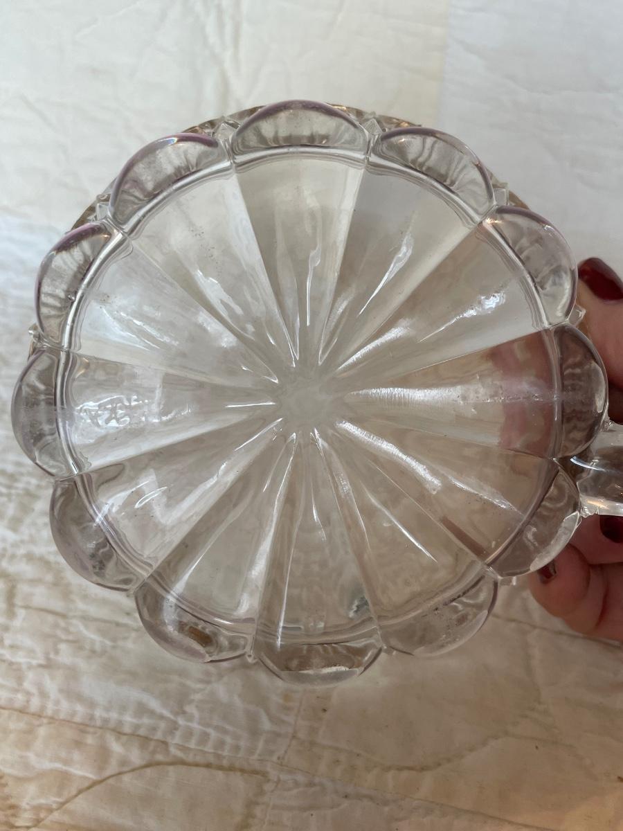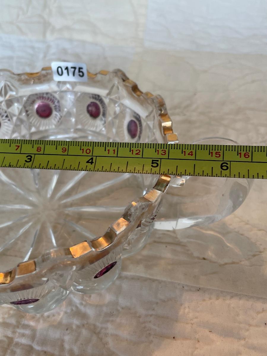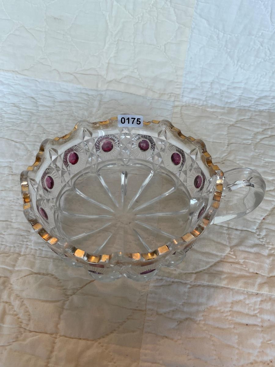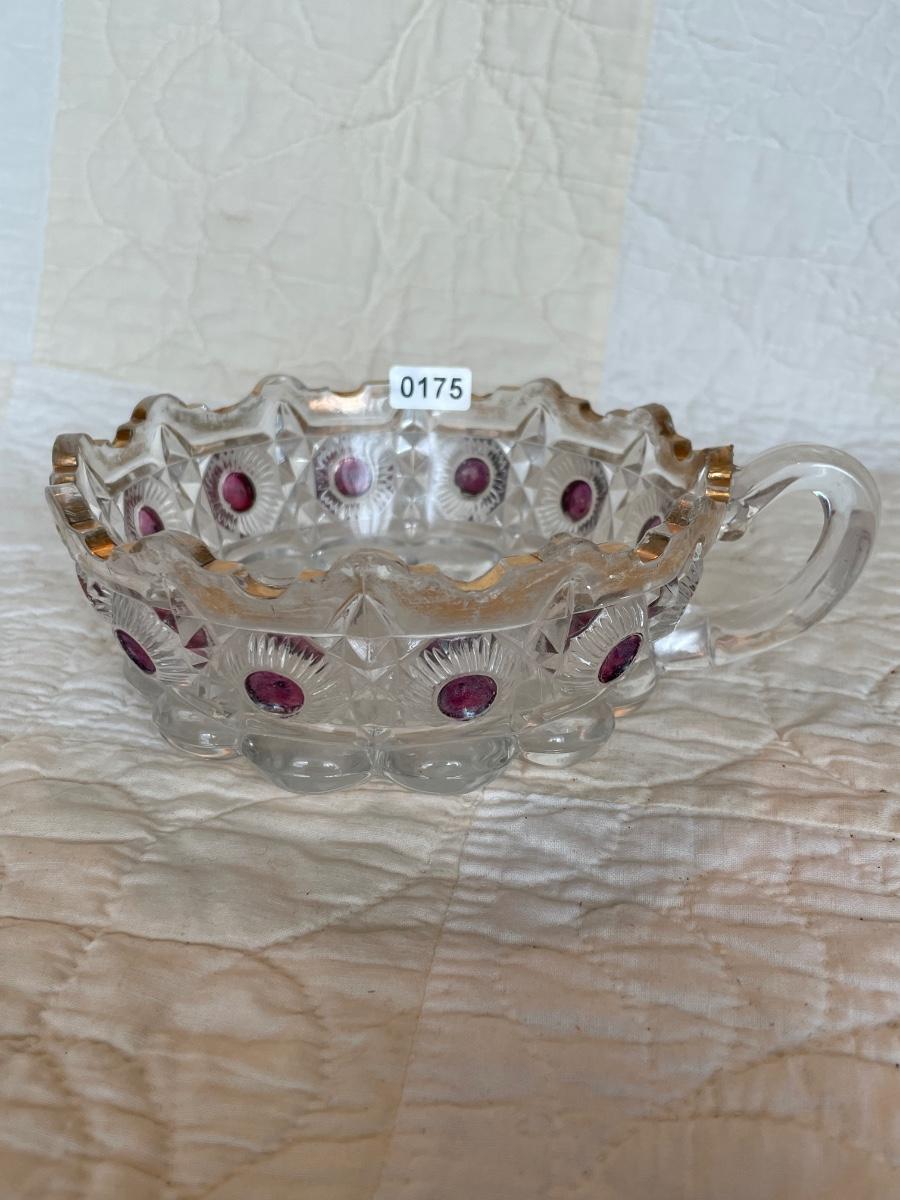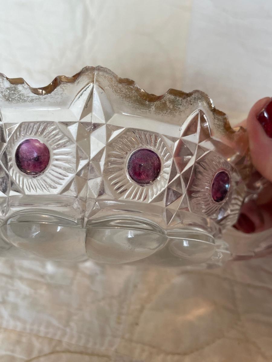 EAPG US Glass daisy bullseye purple amethyst stained bowl-with handle