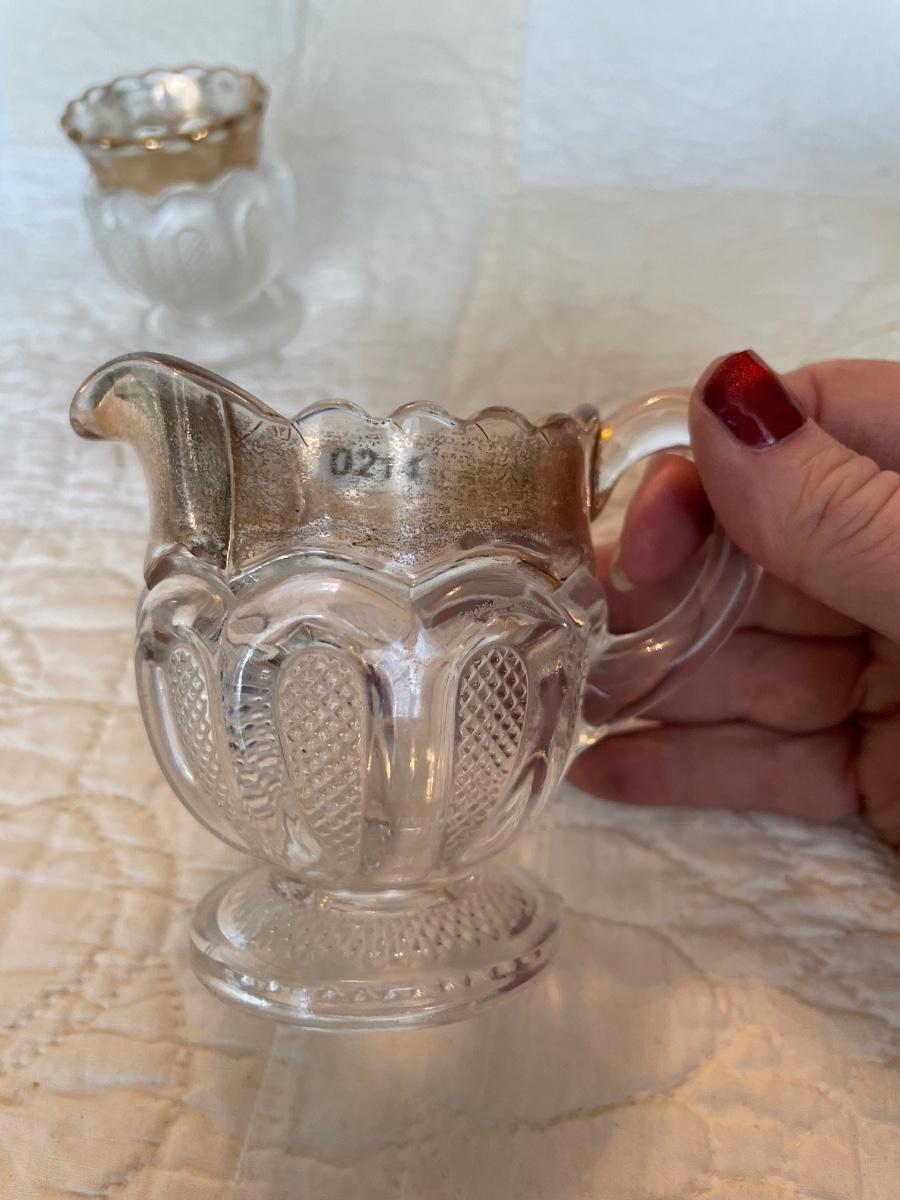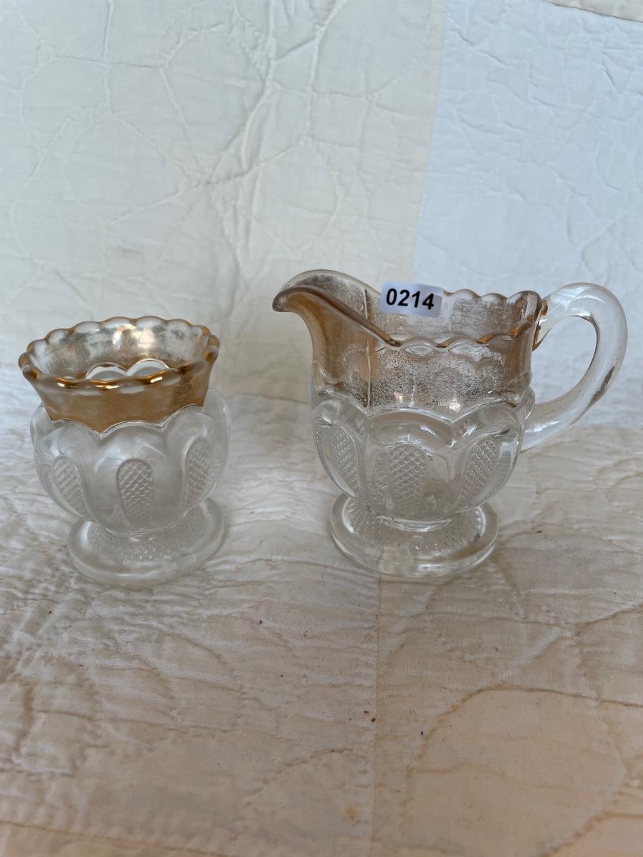 EAPG US glass Texas sugar & creamer with gold highlights