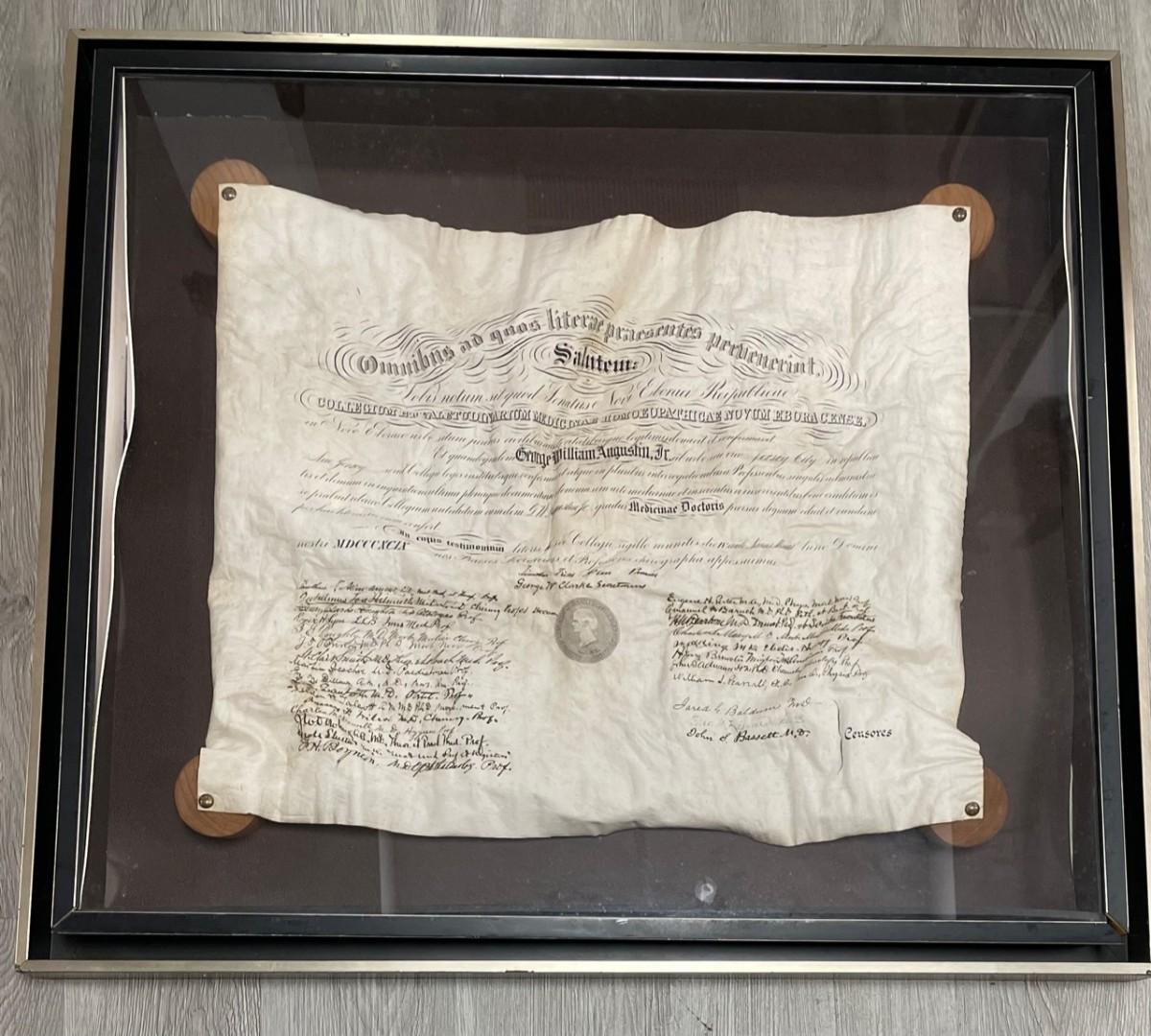Description: Early 1800s French Academic Certificate / Signed by a number of professors; Material: Paper; Measurement approximate: 23 x 19 Inches