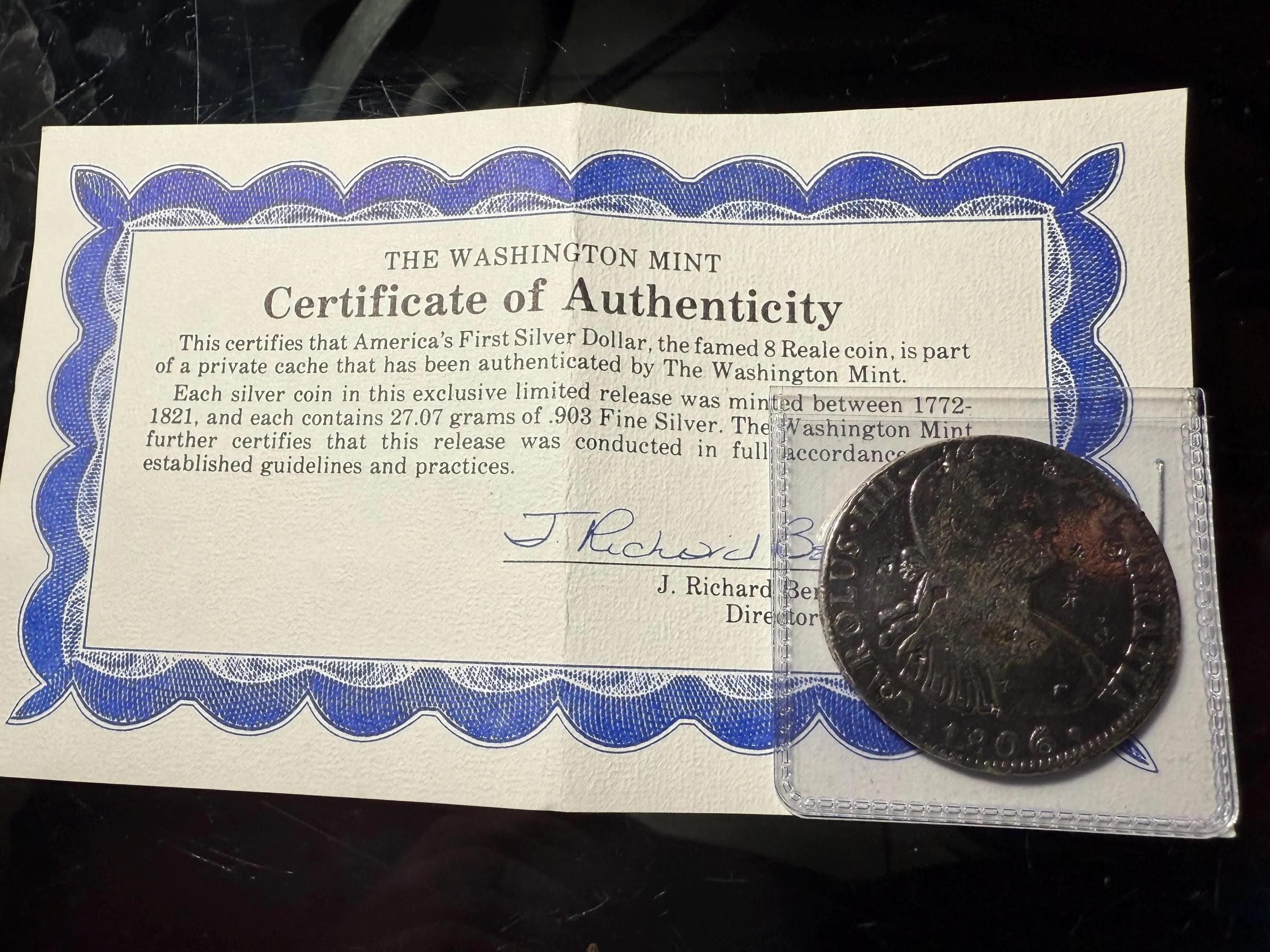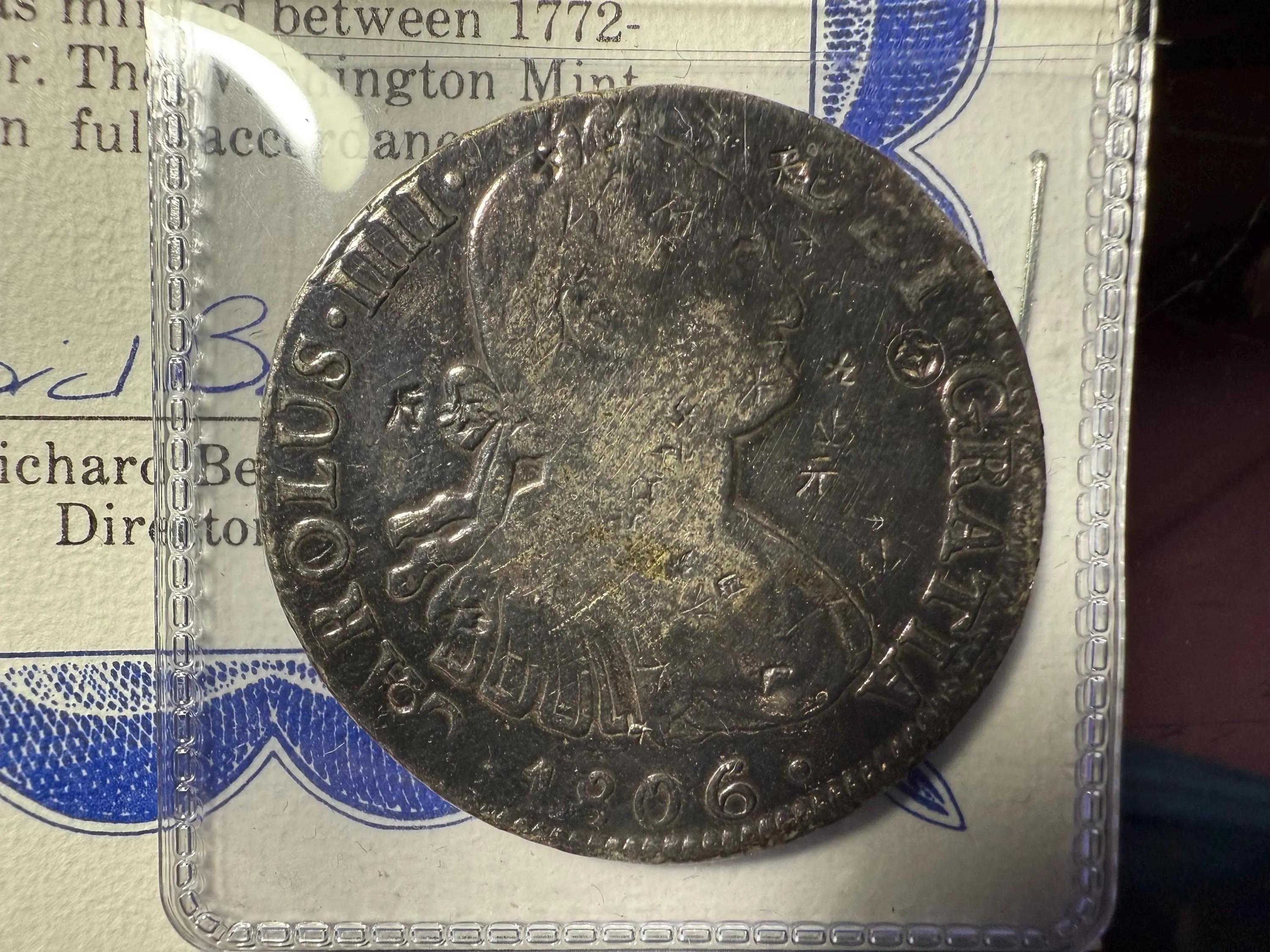 Early 1806 Circulated/Polished Condition 8-Reales Silver Coin w/Chop Marks by the Washington Mint as Pictured. $5 DOMESTIC SHIPPING.