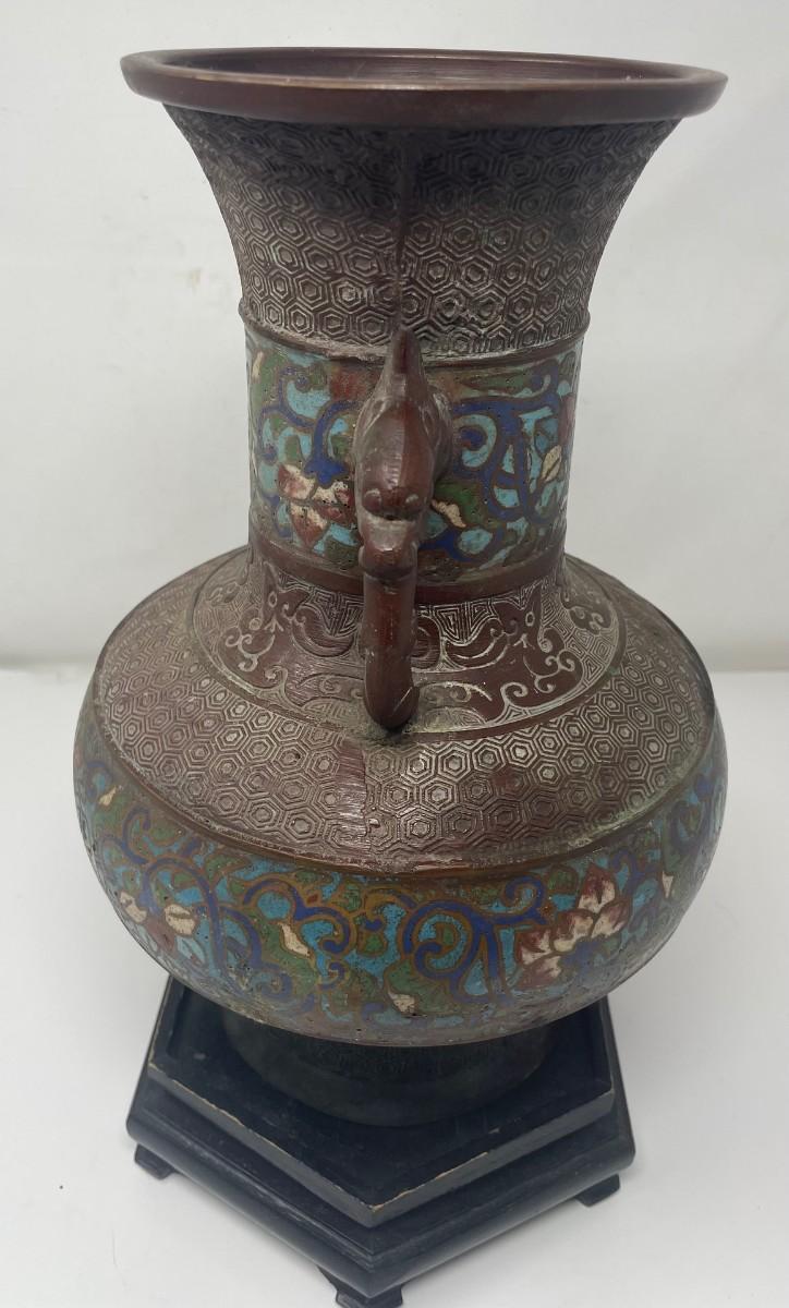 Description: Early 1900 Cloisonne vase 12 H. Measurement approximate: 12 H Inches. Material: Bronze, cloisonne
