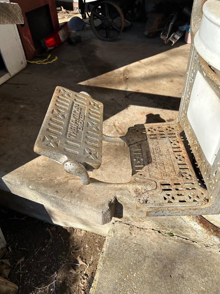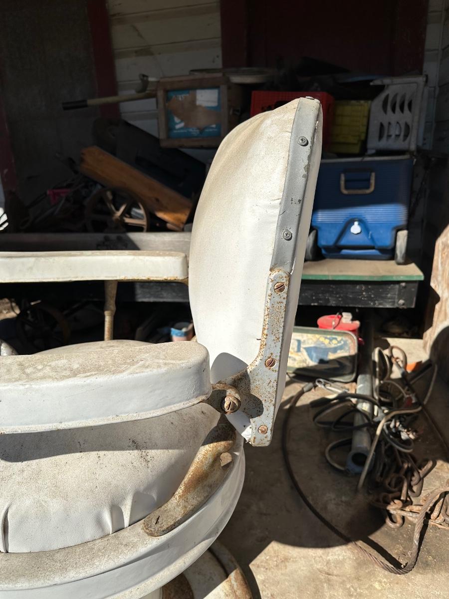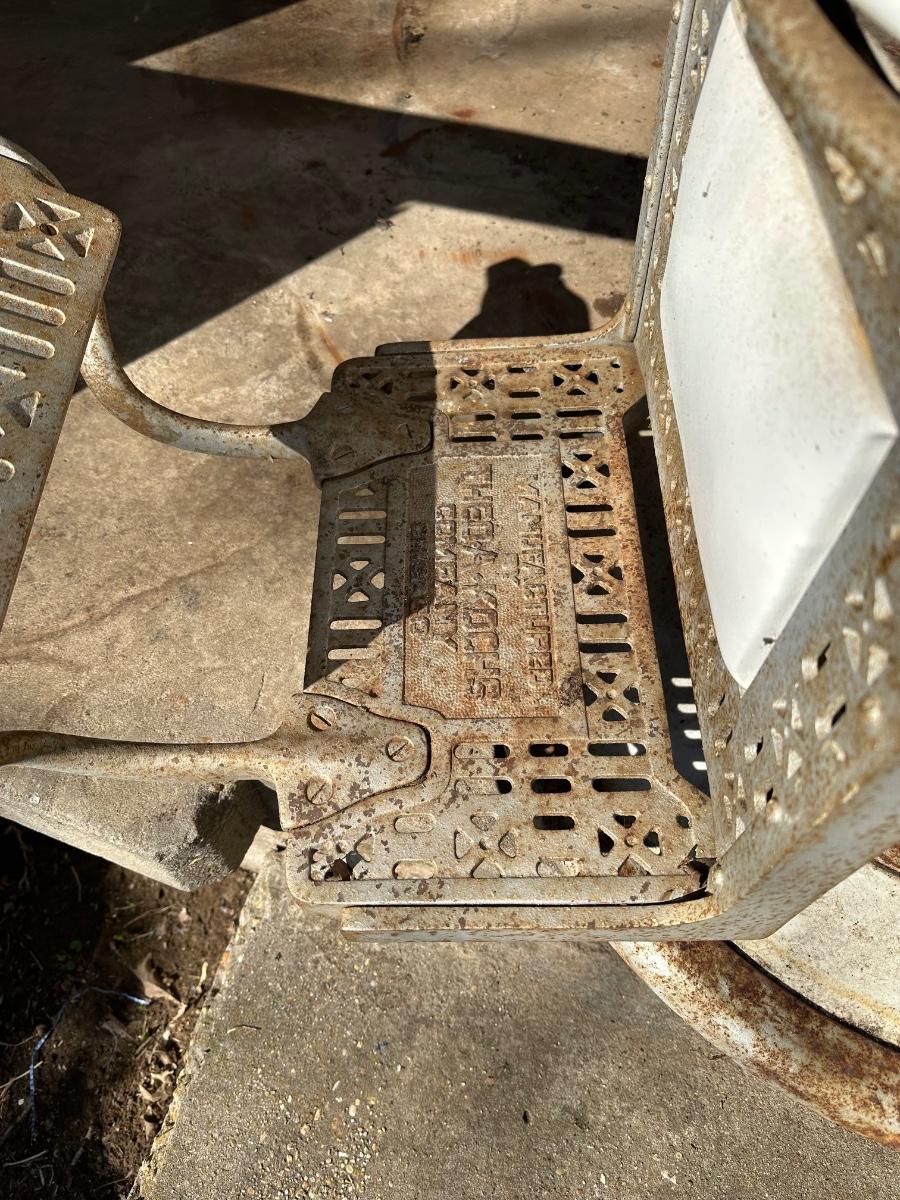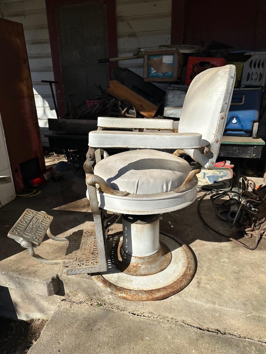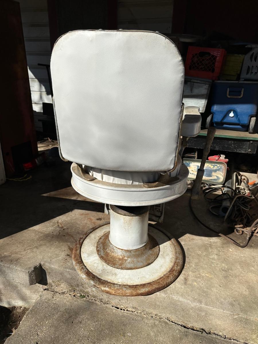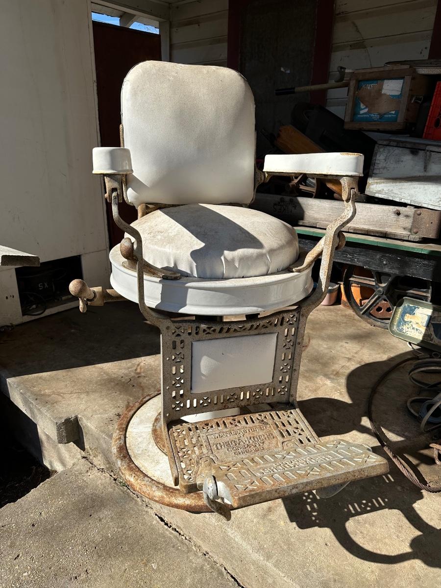 Early 1900’s Antique Cast-Iron Barber Chair w/ Footrest – The Dazey Company – Industrial Barber Shop Chair