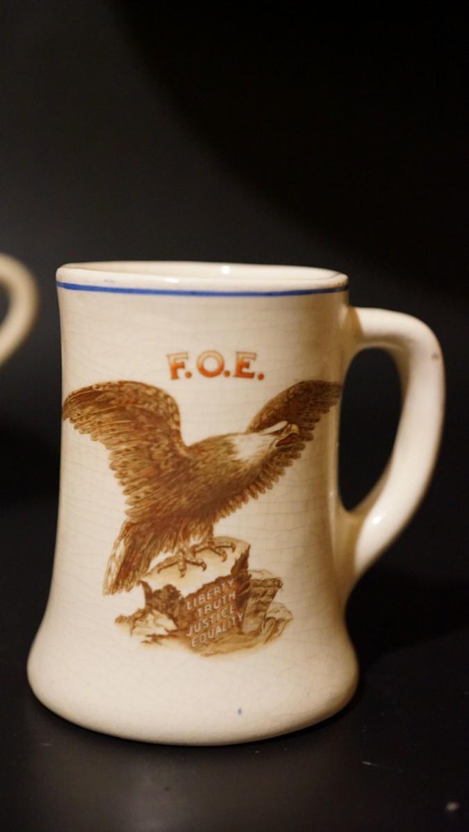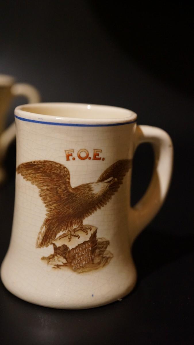 early 1900's unmarked but of the early Roseville dinnerware line for children at these four mugs.