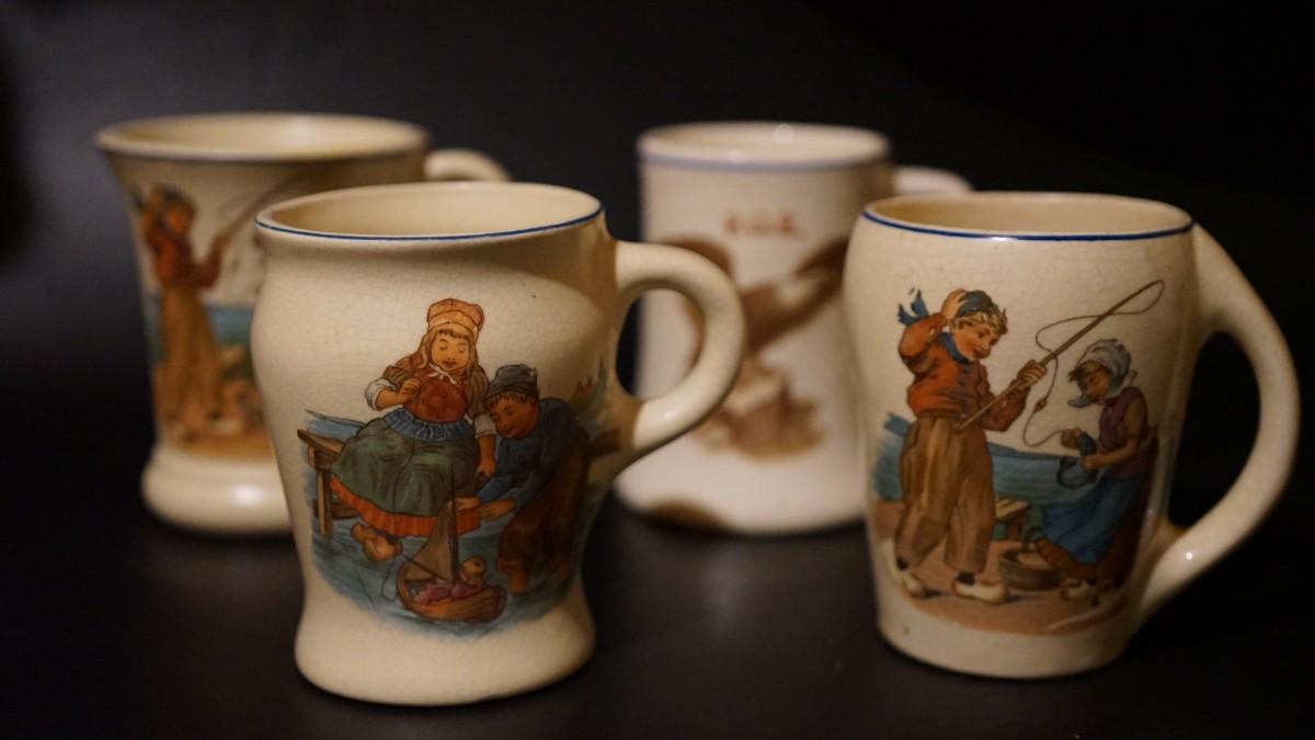 EARLY 1900'S DUTCH CHILDREN MUGS EARLY ROSEVILLE