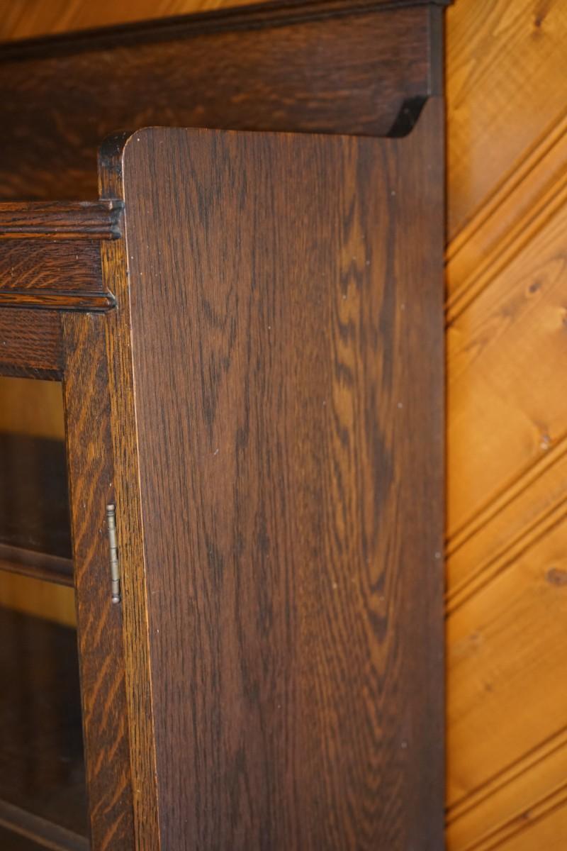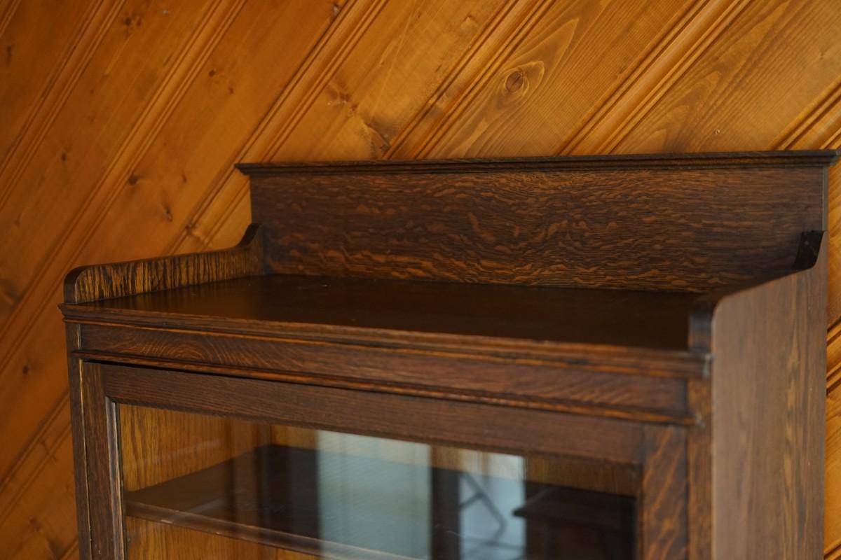 Circa 1900's quarter sawn oak cabinet with a back board on the top for accent.
