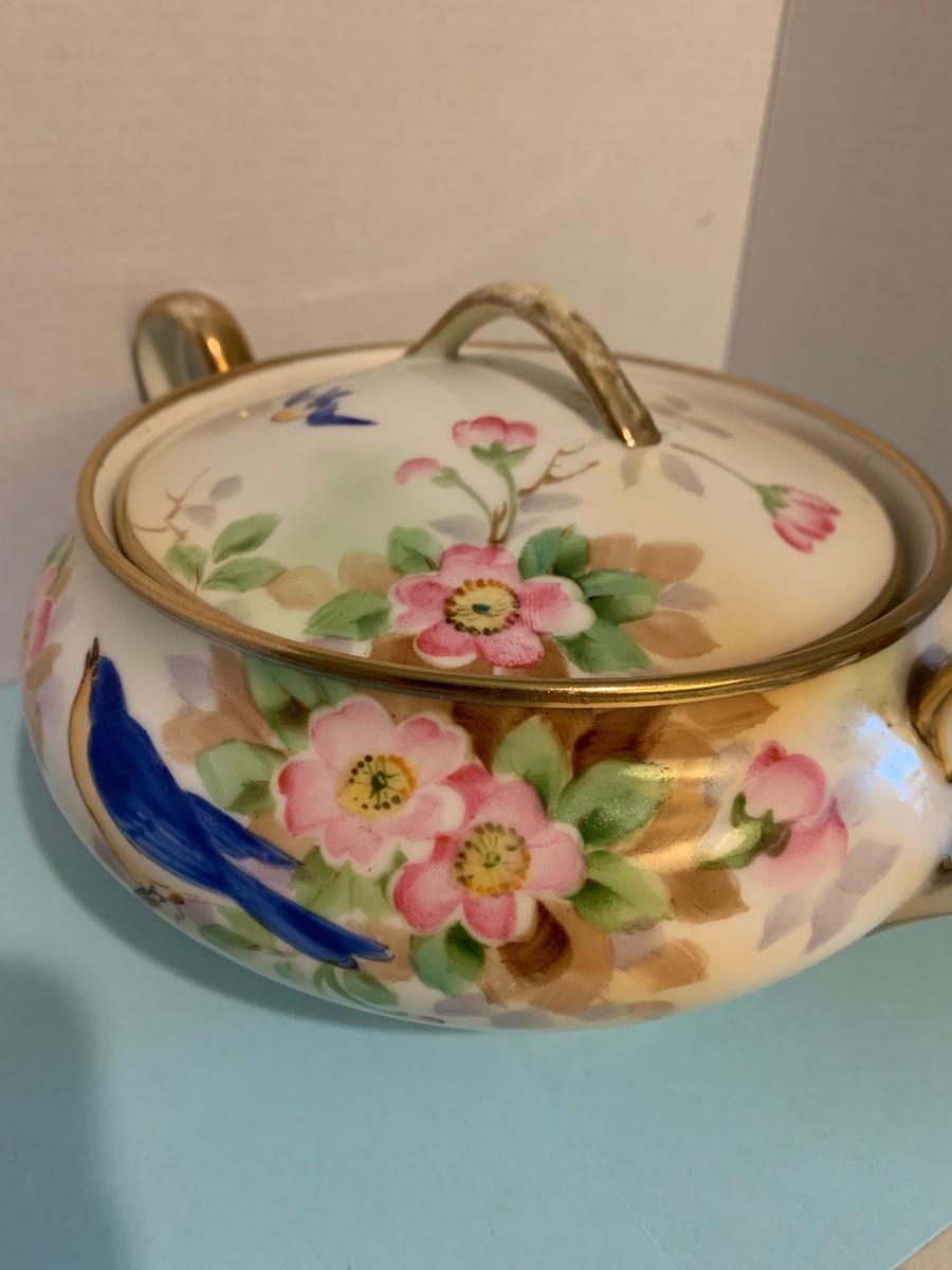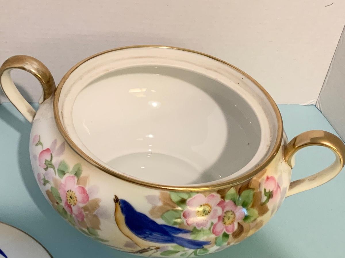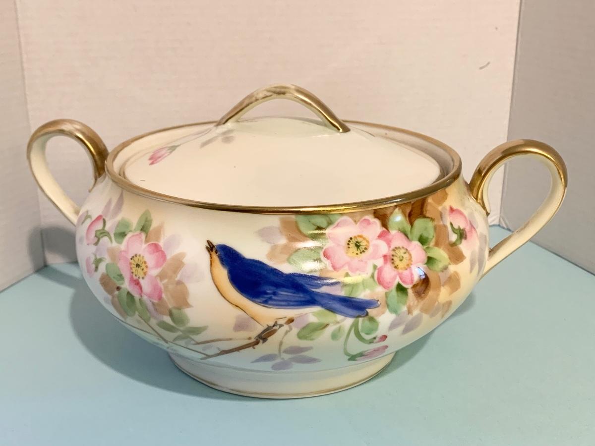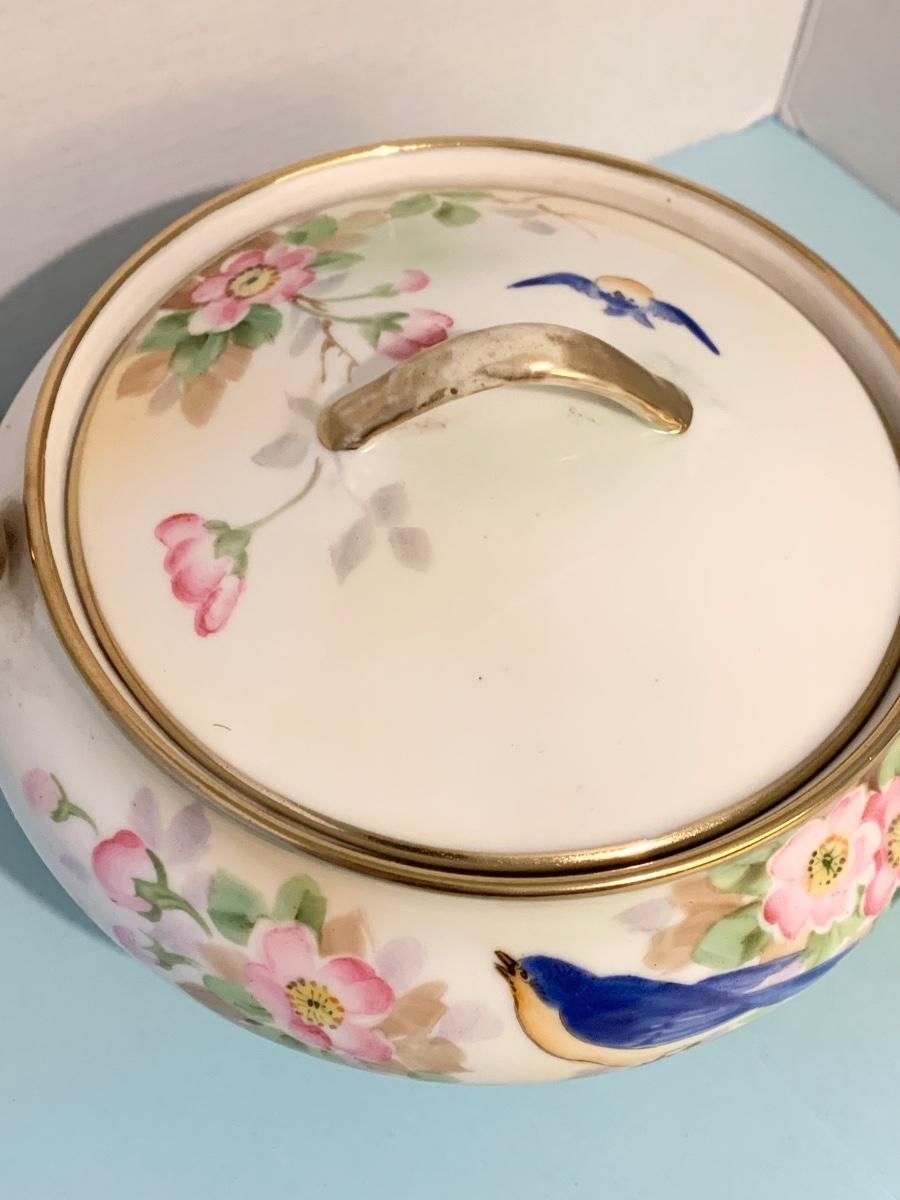 Early 1900s Morimura Brothers Nippon Covered Dish Blue Birds