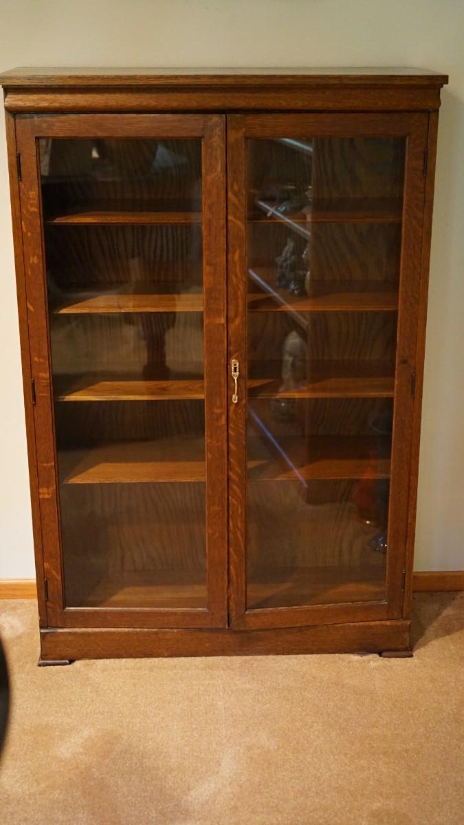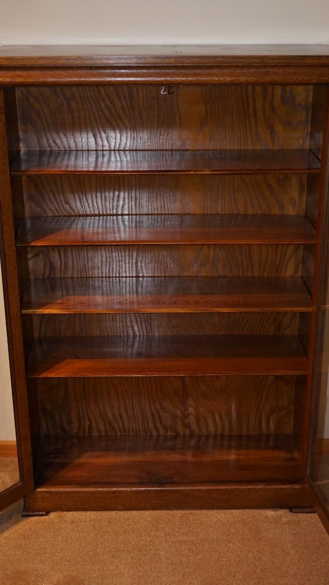 EARLY 1900'S QUARTER SAWN OAK GLASS DOOR BOOKCASE WITH SHELVES
