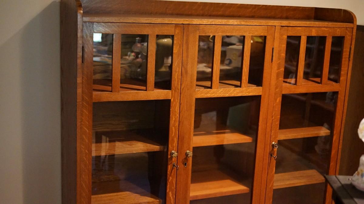 EARLY 1900'S THREE SECTION ARTS AND CRAFTS STYLE BOOKCASE /GALLERY TOP