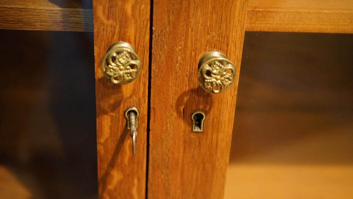replaced brass knobs. not original. original locks and keys