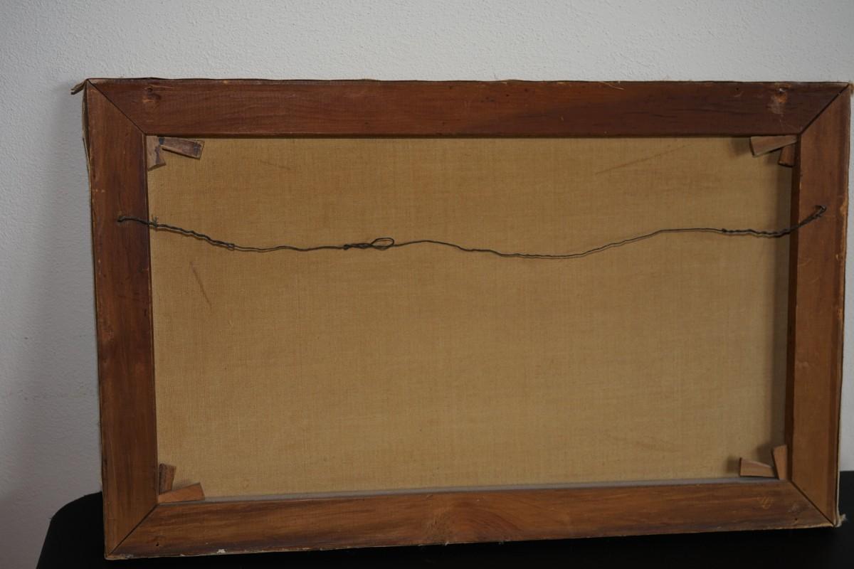 the painting measures: 26" by 16" signed lower right appears to be smolk.