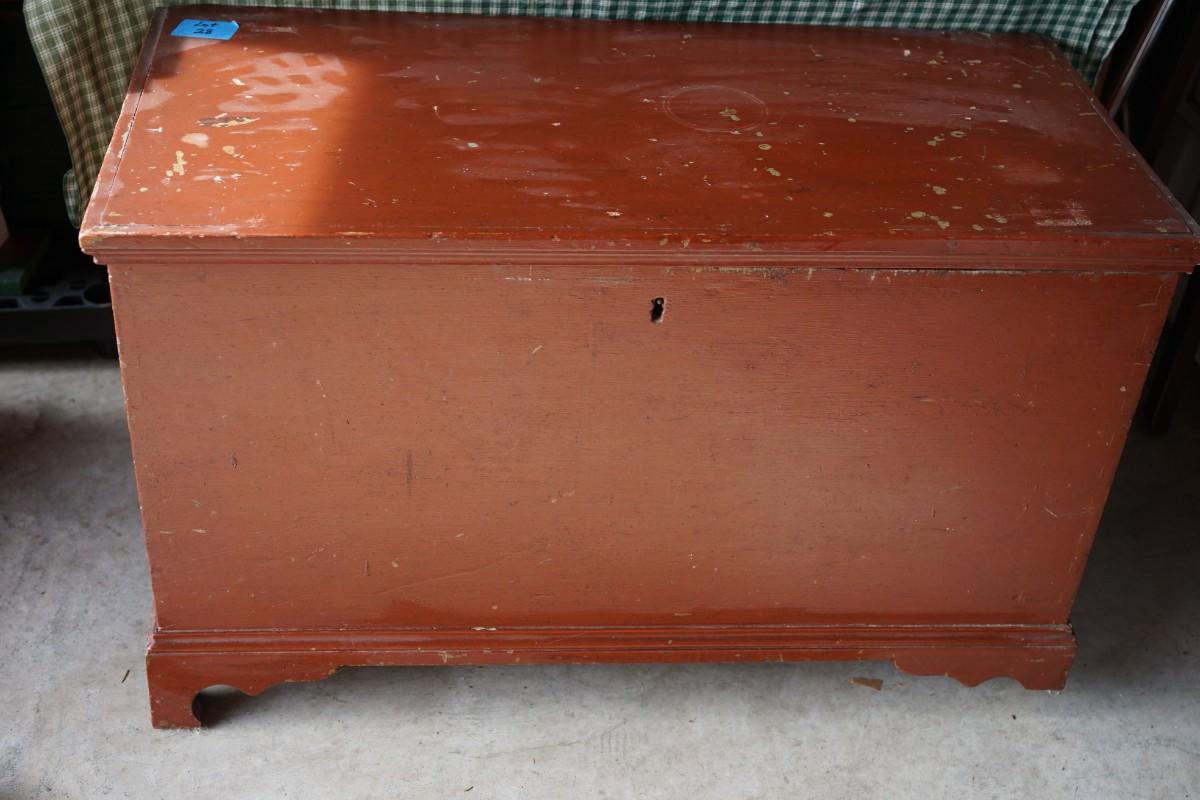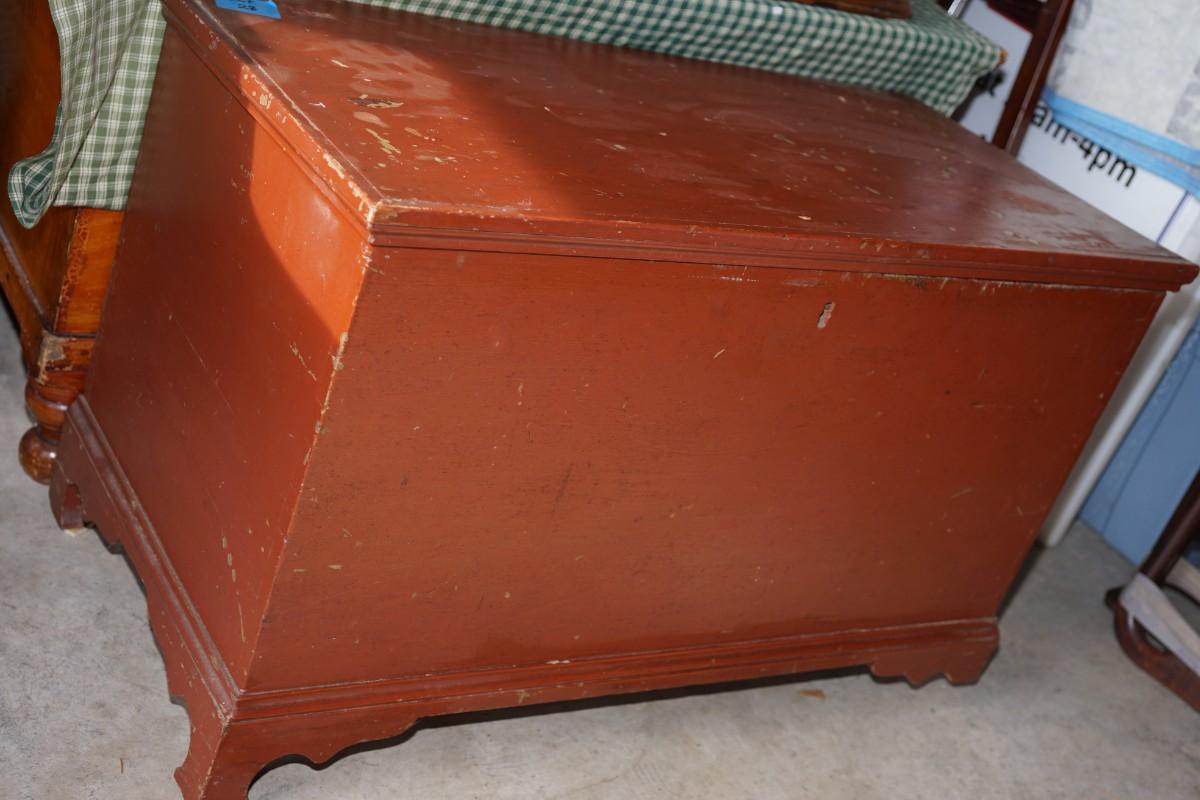 EARLY 19TH CENTURY EASTERN 1830'S RED PAINTED BLANKET CHEST