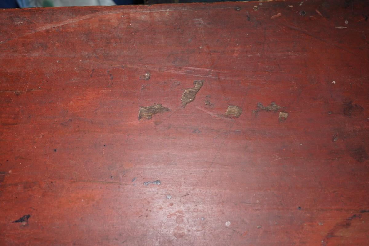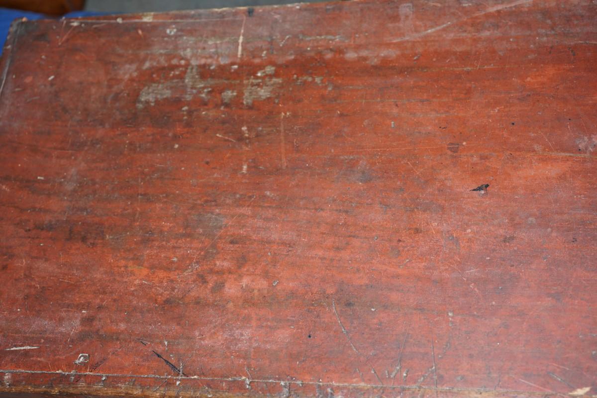 EARLY 19TH CENTURY WOODEN CHEST/ ORIGINAL RED PAINT/ DOCUMENT BOX