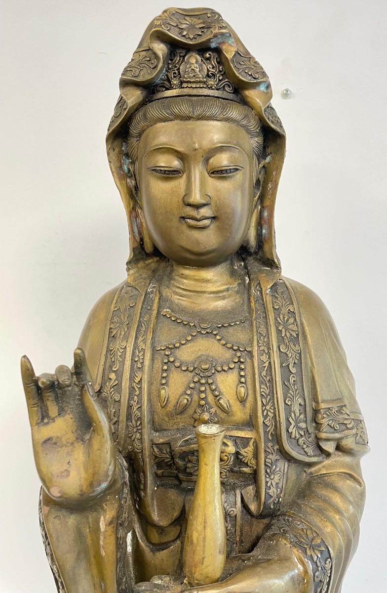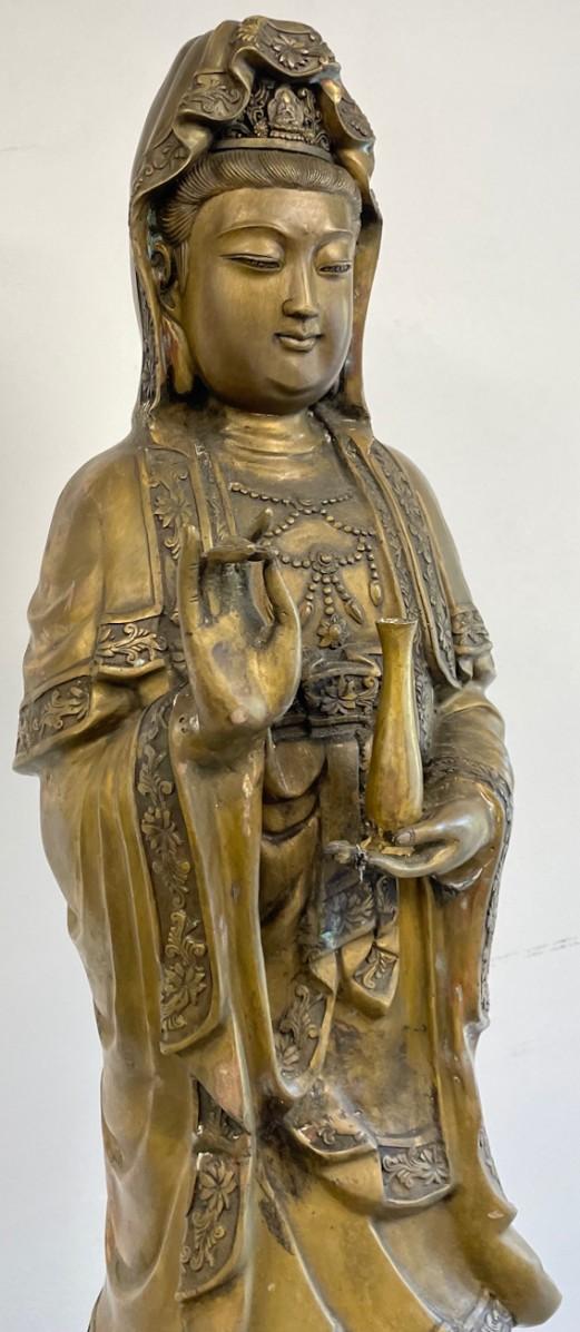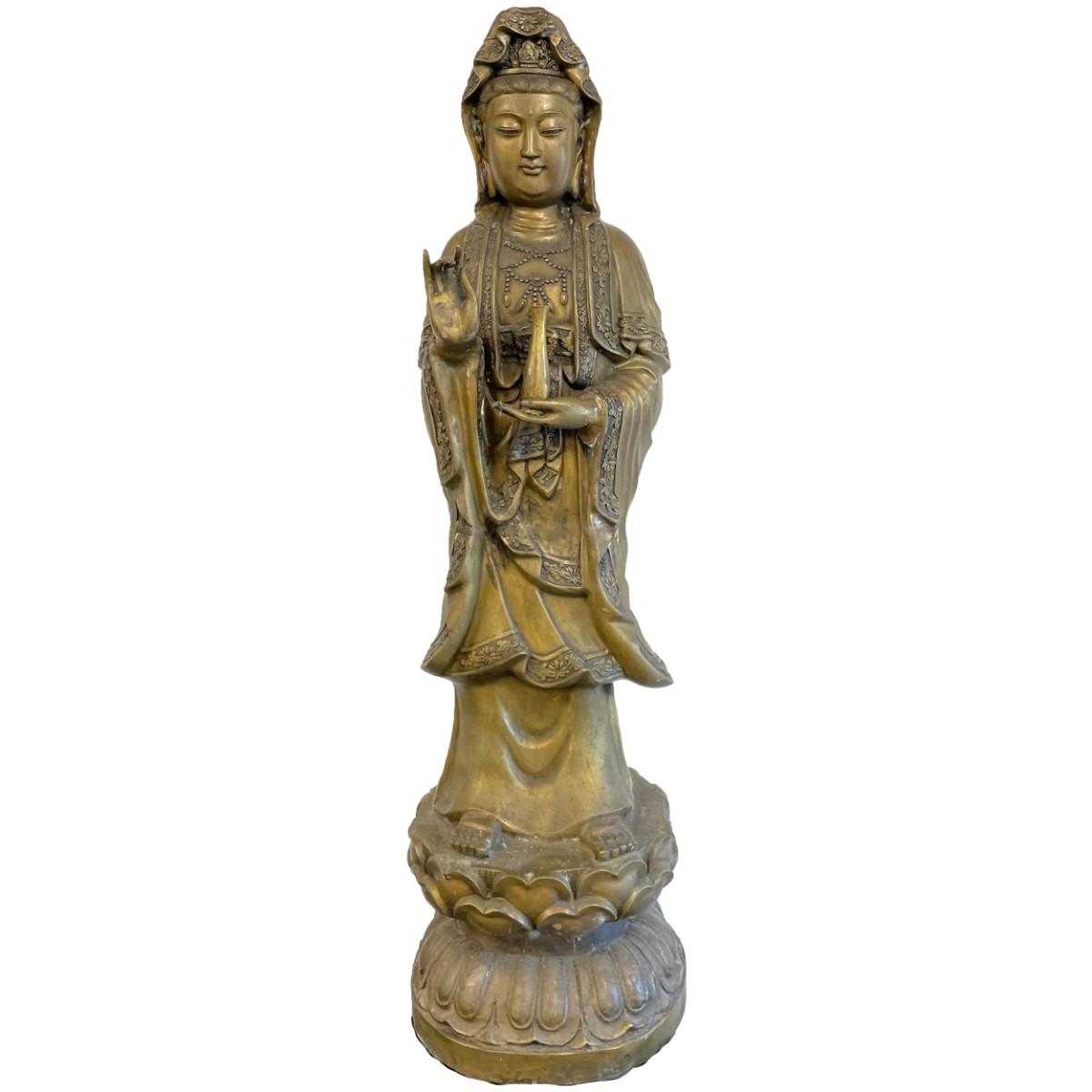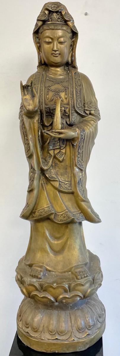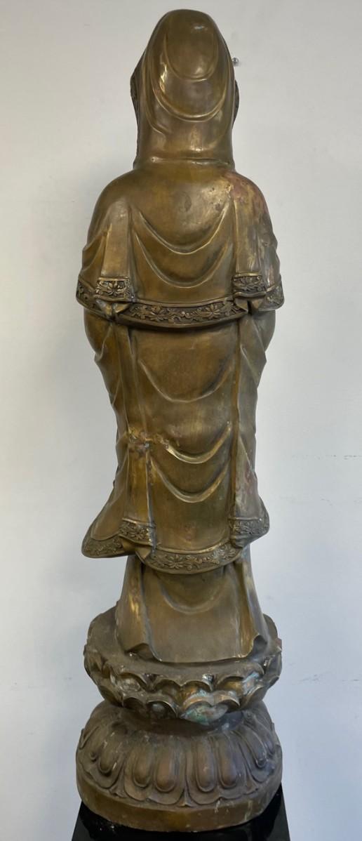 Description: Early 20th Century Chinese Bronze figurine; Measurement approximate: 11"w x 38"h; Material: Bronze