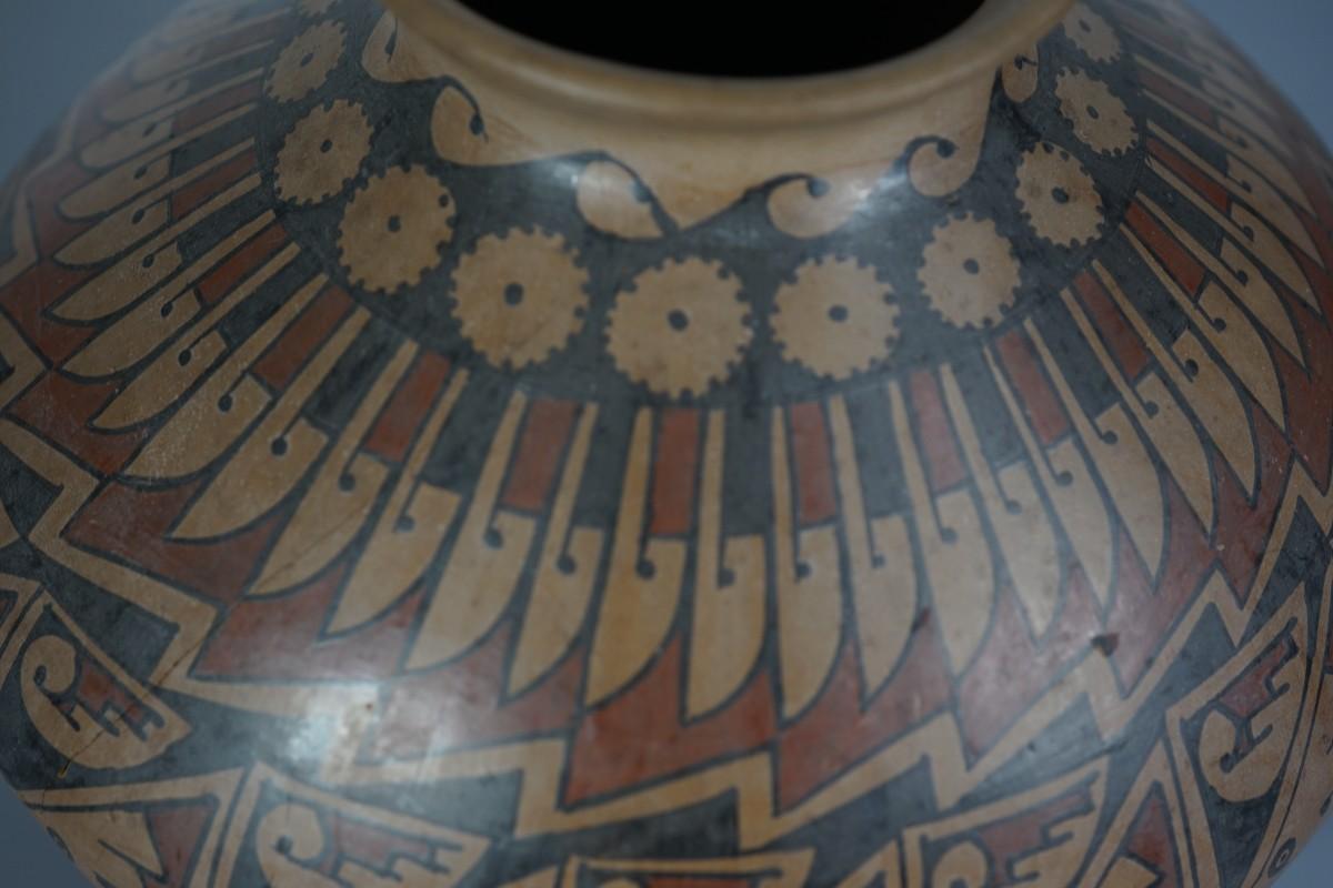EARLY 20TH CENTURY LG SAN ILDEFONSO POT FEATHER DECORATION / AS IS