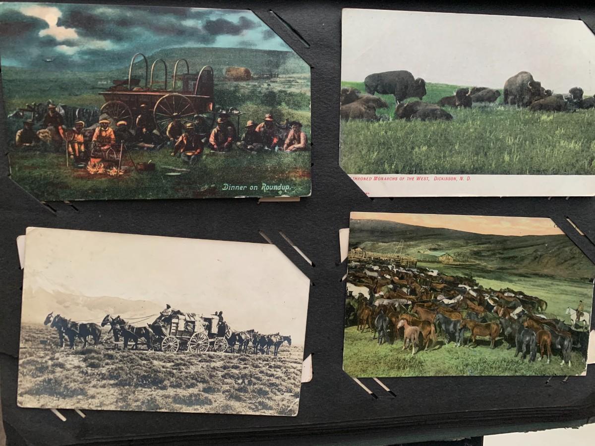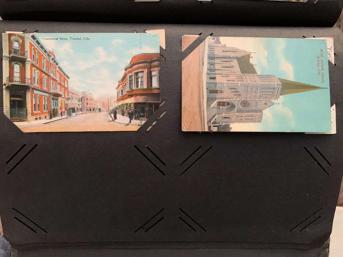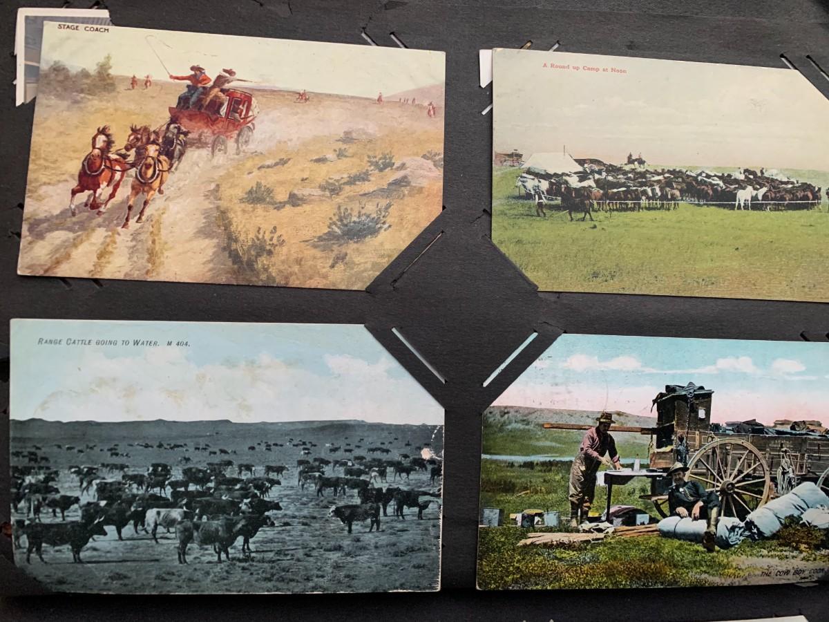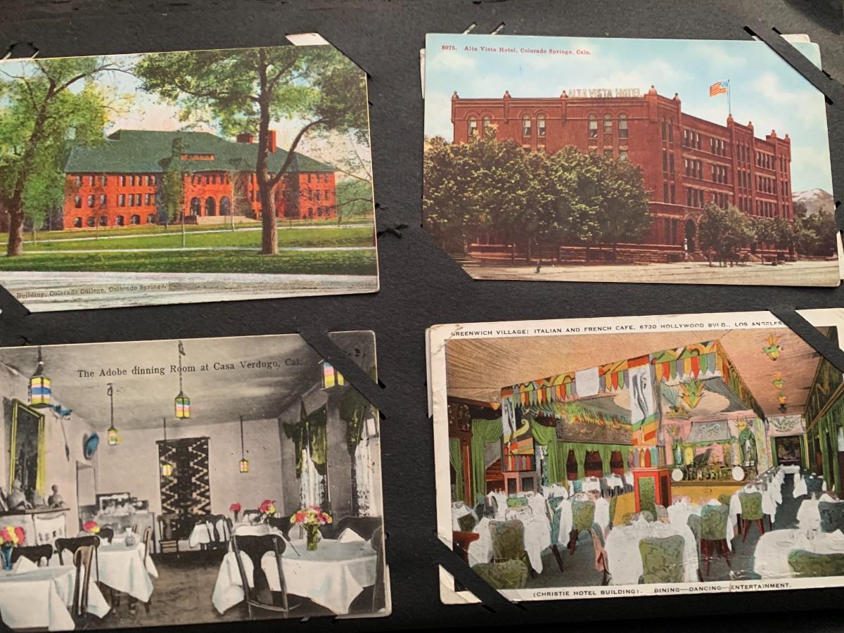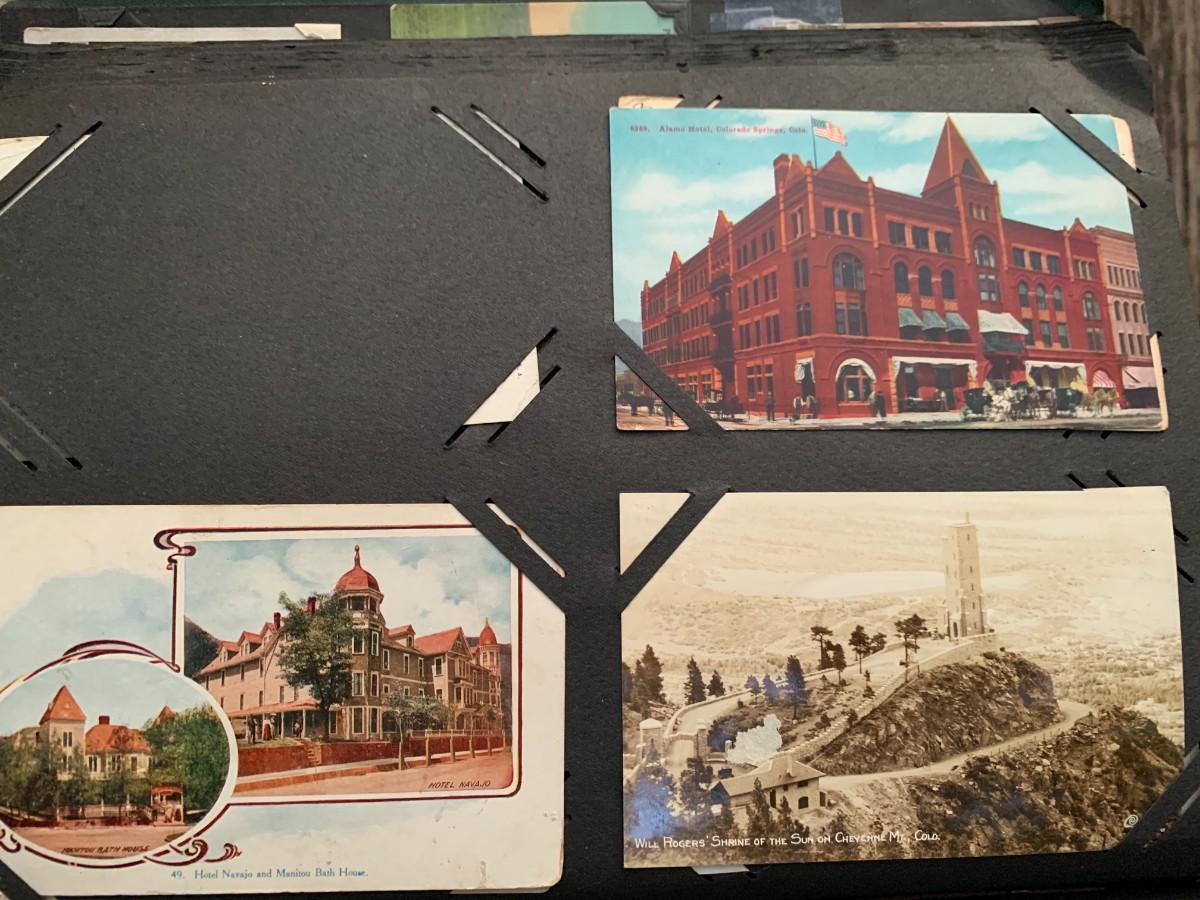 Unfortunately, someone was able to steal 4 of the postcards (and an 8 1/2 x 11 print of a Colorado landscape) during the in-person portion of the estate sale. The missing post cards/and print are the last 5 photos shown in this collection. Both parties who have bid on the collection have been notified.