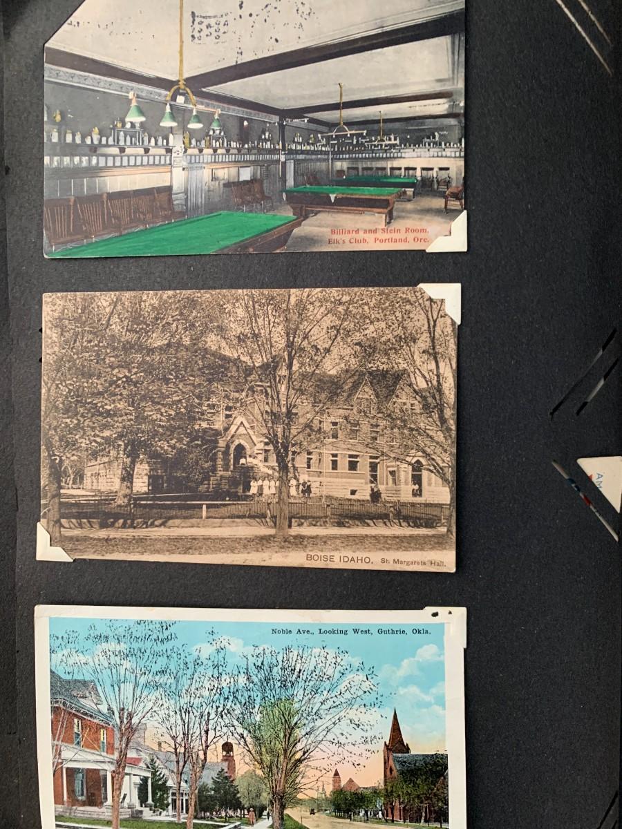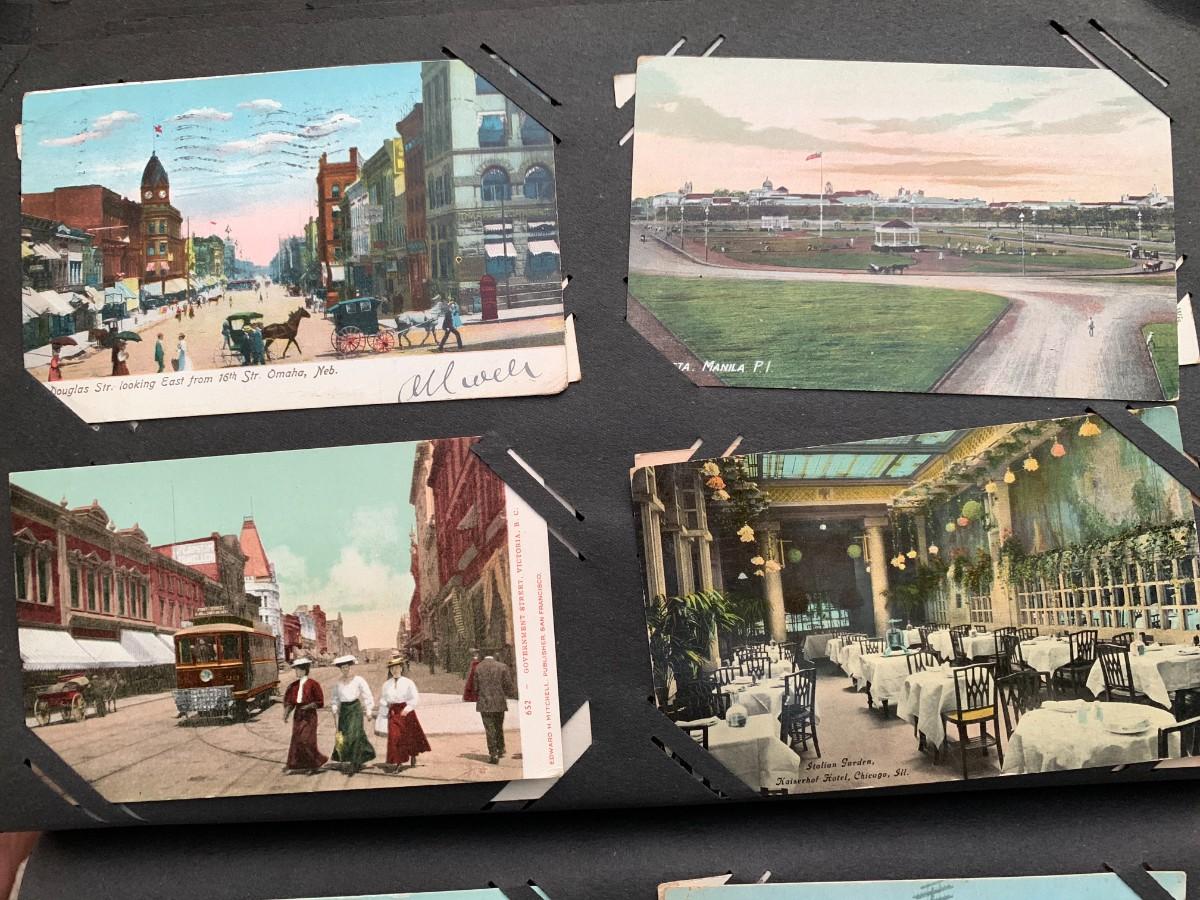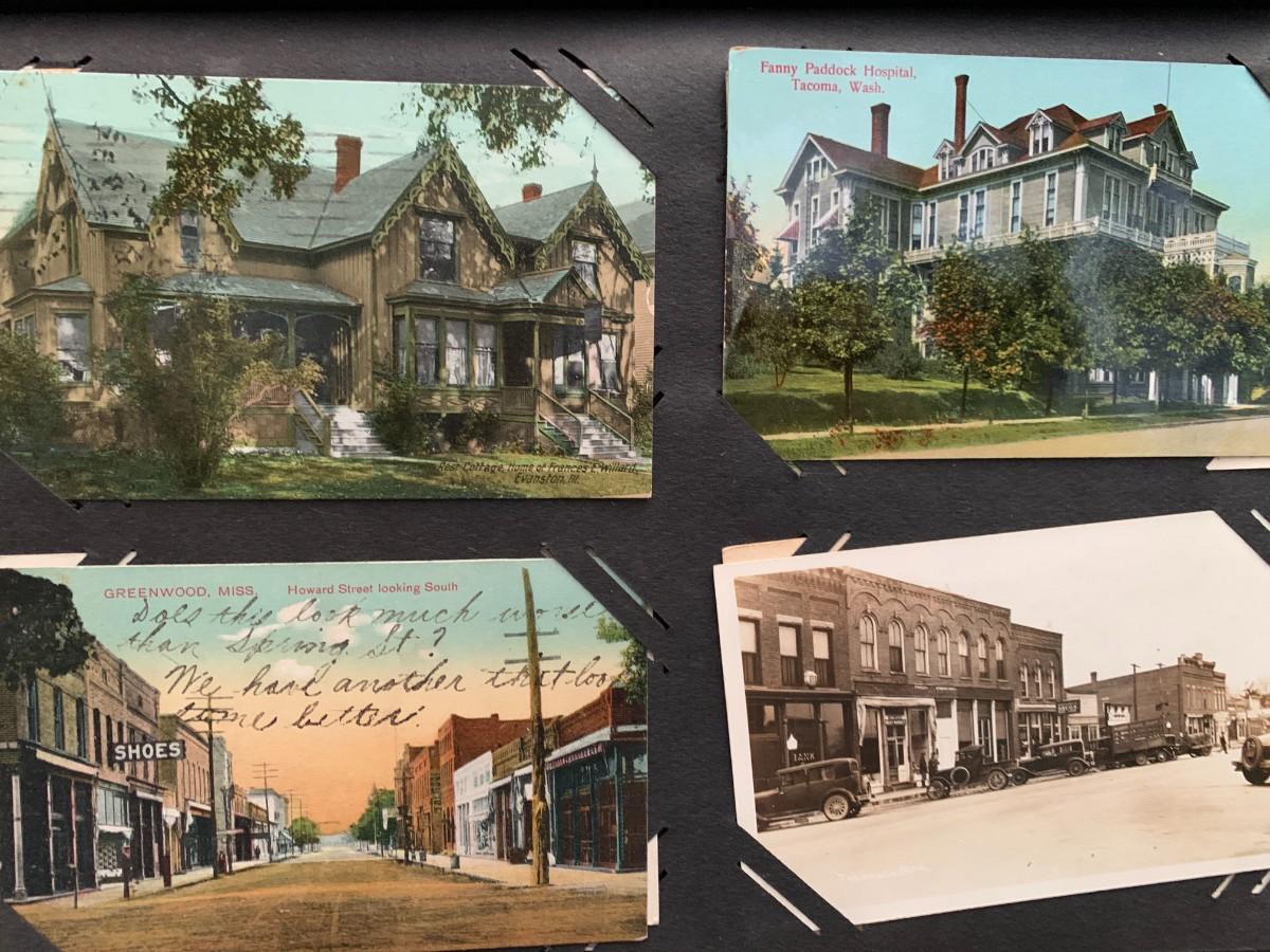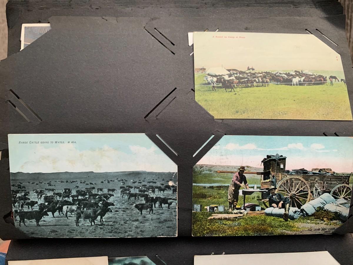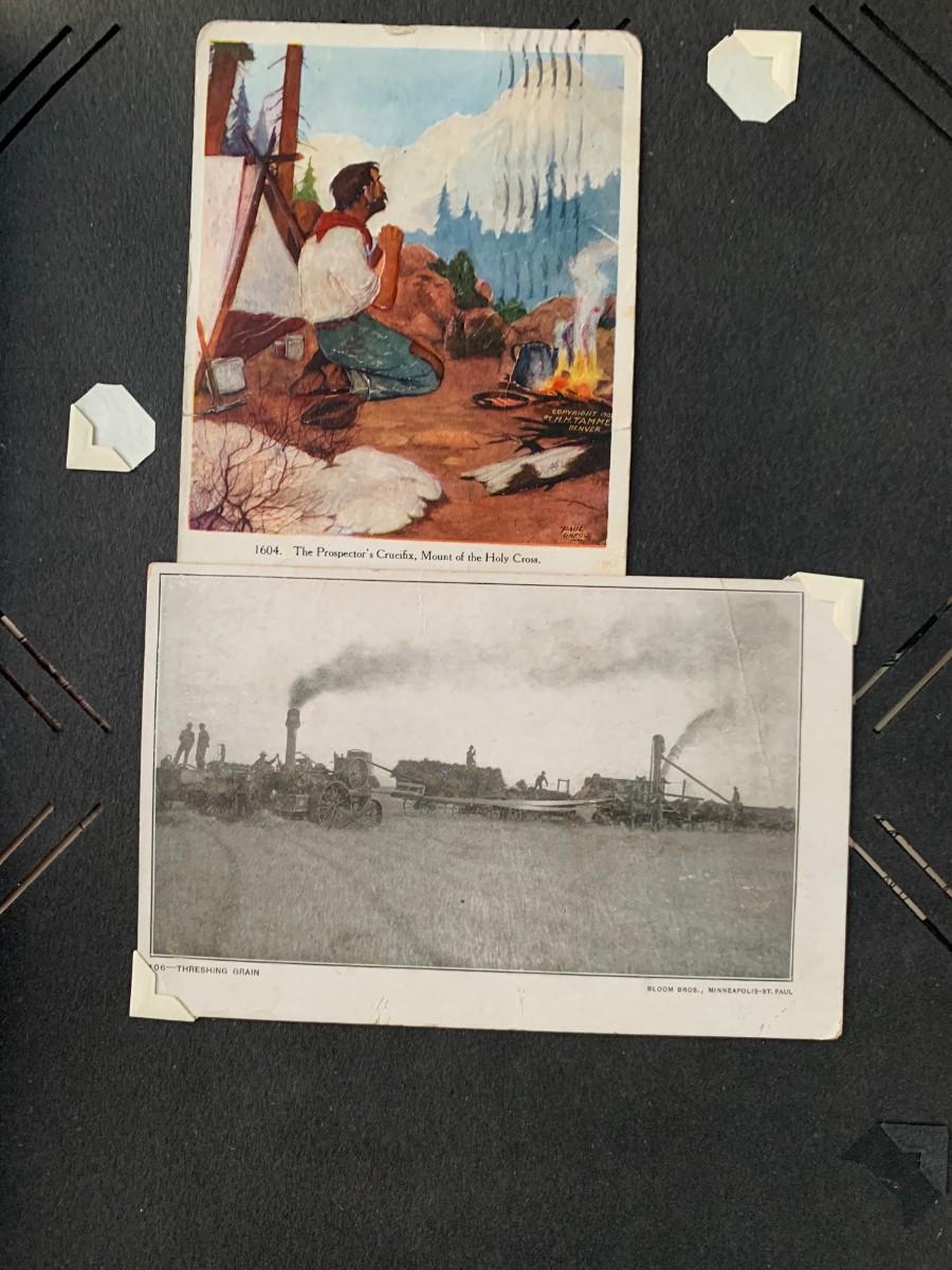 Unfortunately, someone was able to steal 4 of the postcards (and an 8 1/2 x 11 print of a Colorado landscape) during the in-person portion of the estate sale. The missing post cards/and print are the last 5 photos shown in this collection. Both parties who have bid on the collection have been notified.