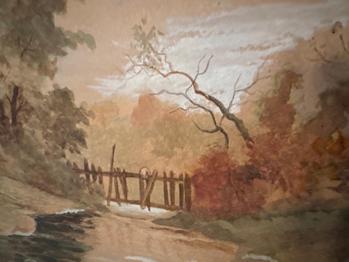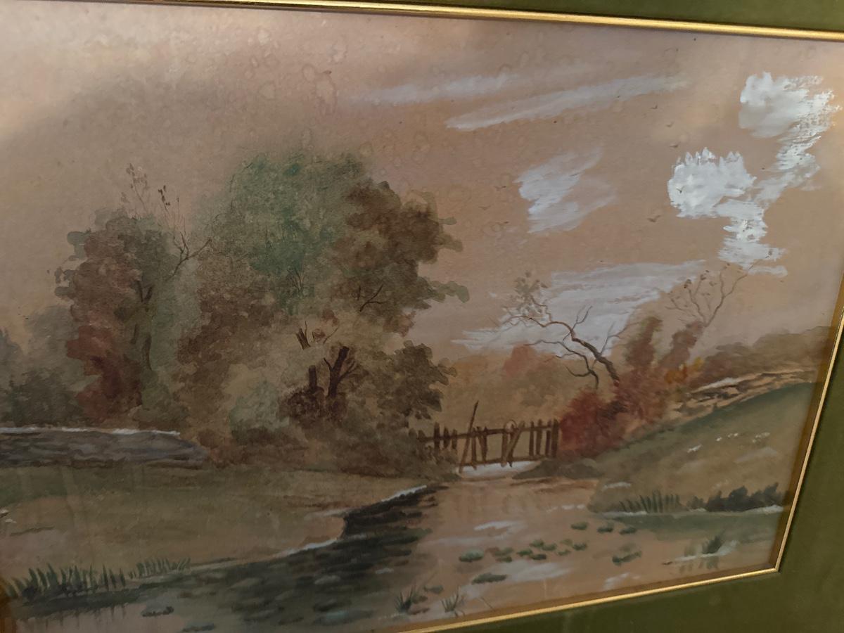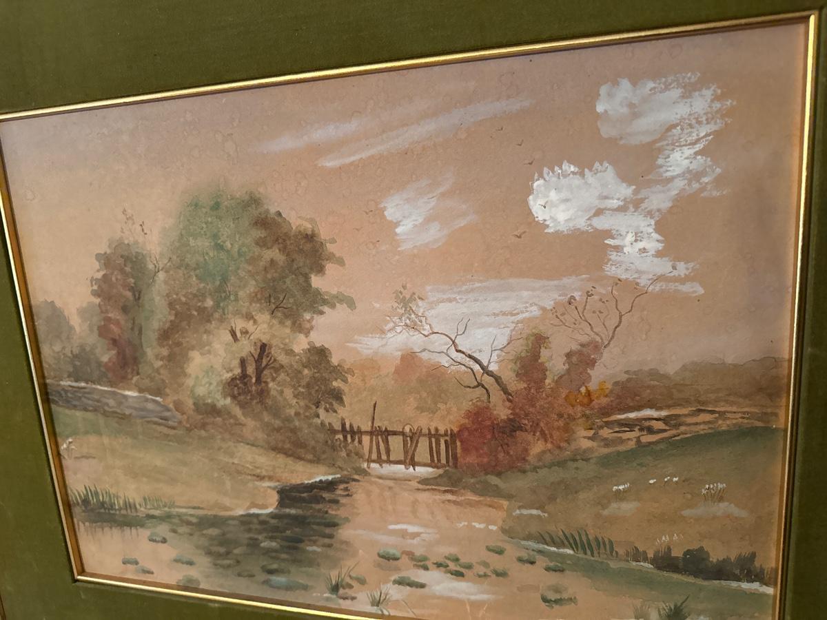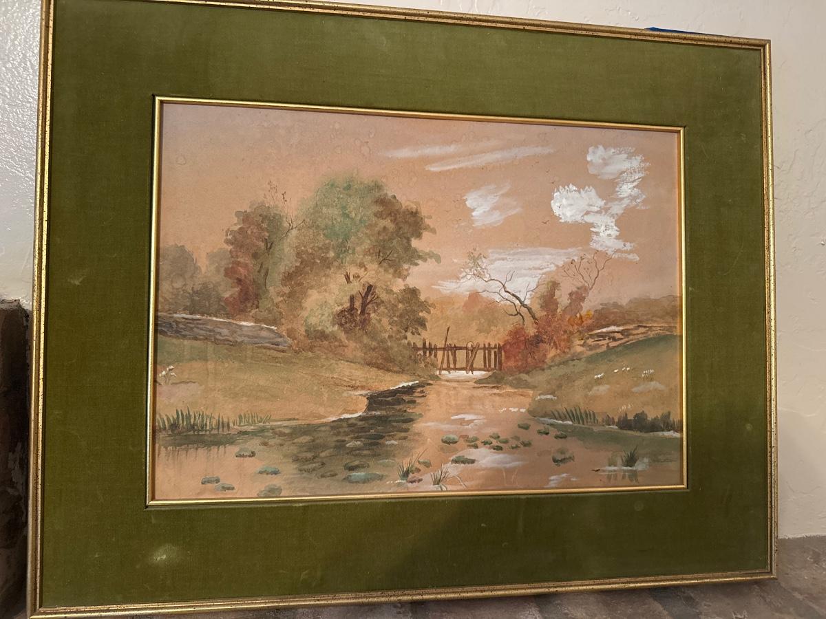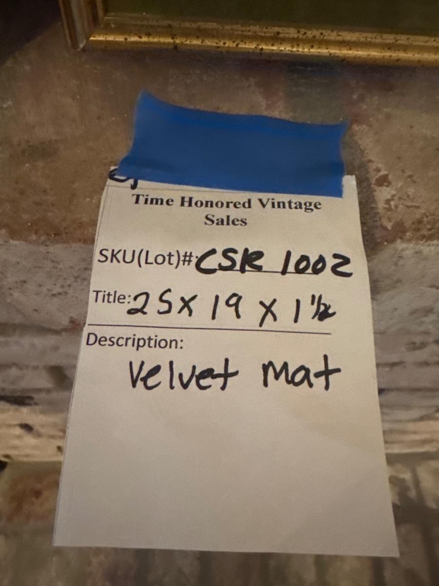 Landscape velvet mat, with some slight flaws, no signature noted. Gold gallery frame