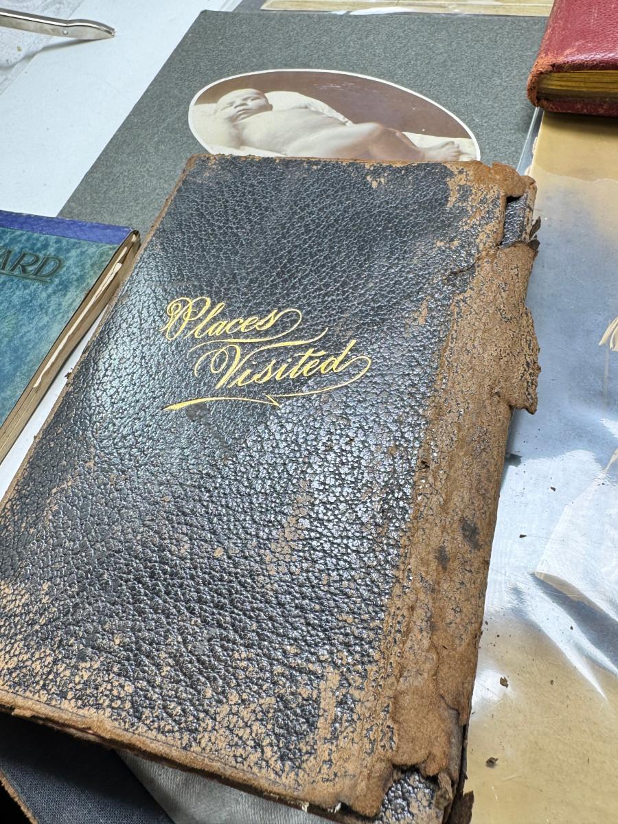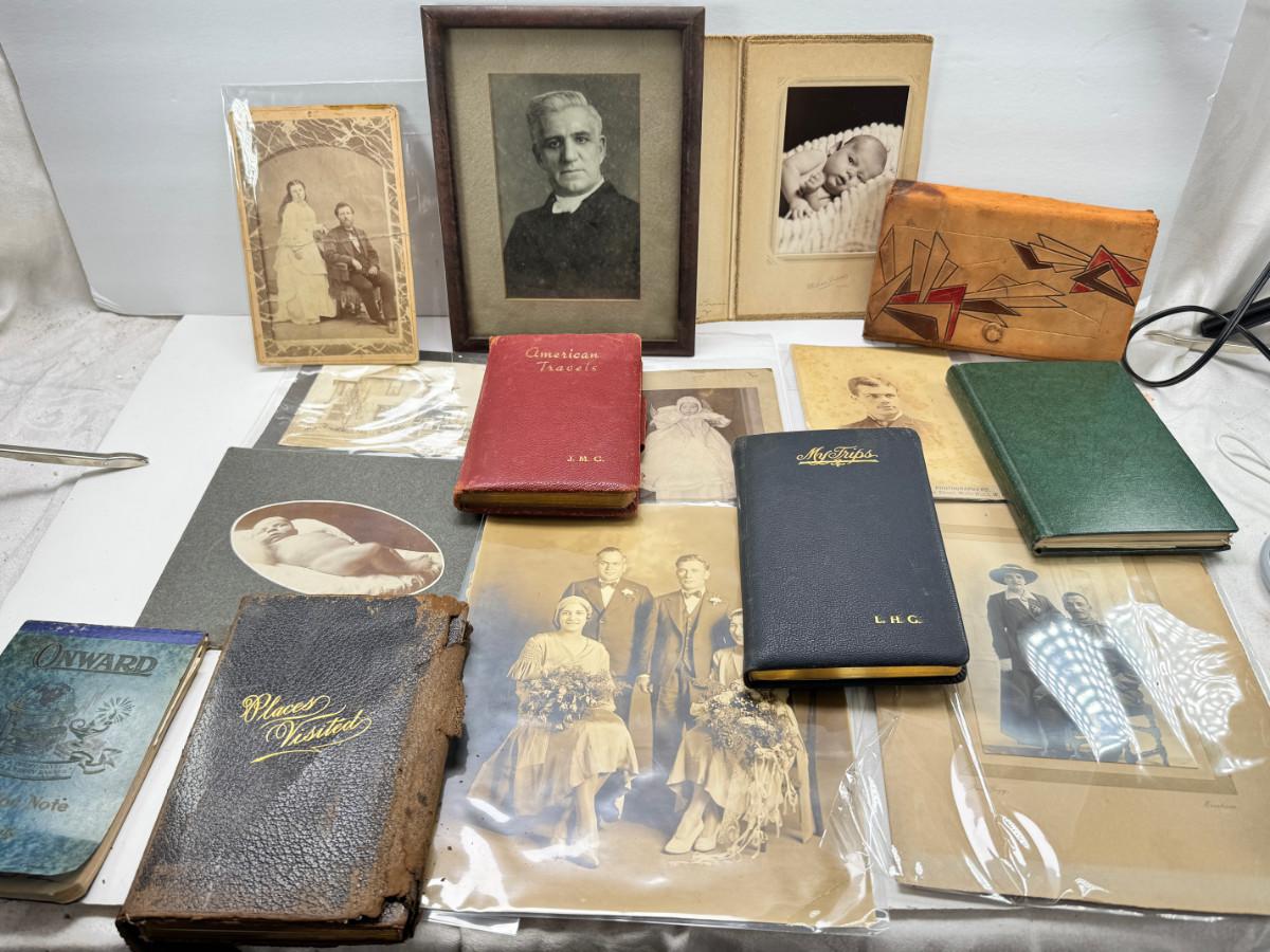 10 early black and white photos, 6 handwritten journals