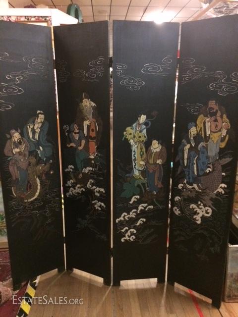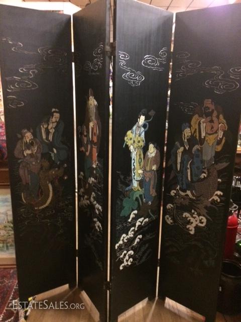 Early 20th-C . Chinese Qing Coromandel 4- Panel Screen./Lacquered of Gods.
