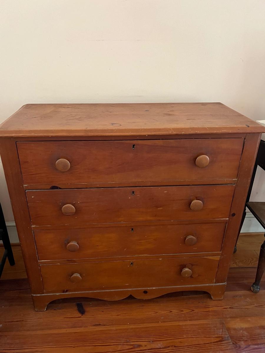 early 4 drawer pine chest, 36 x 38.5 x 17.25