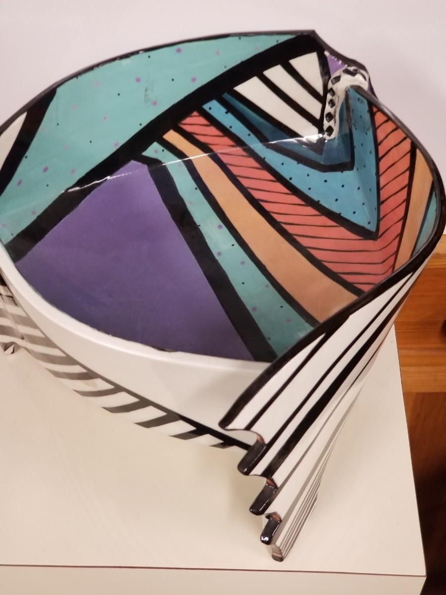 Early 80s ceramic hand-painted art bowl by Dorothy Hafner making a very strong design statement.. please note that horizontal white line on photos is from a reflection and is not a flaw or crack