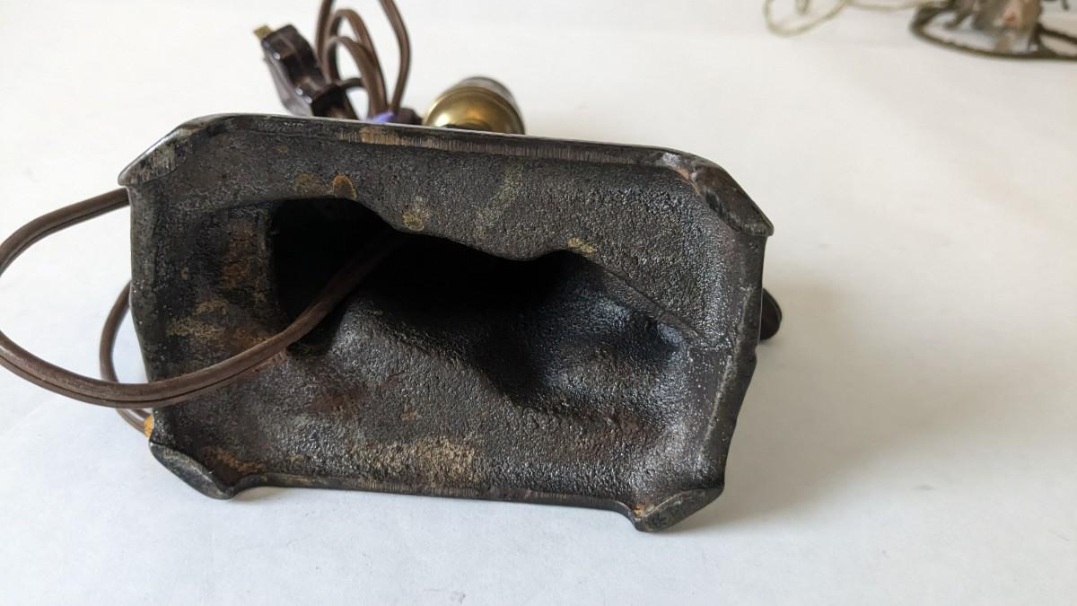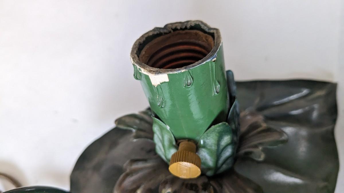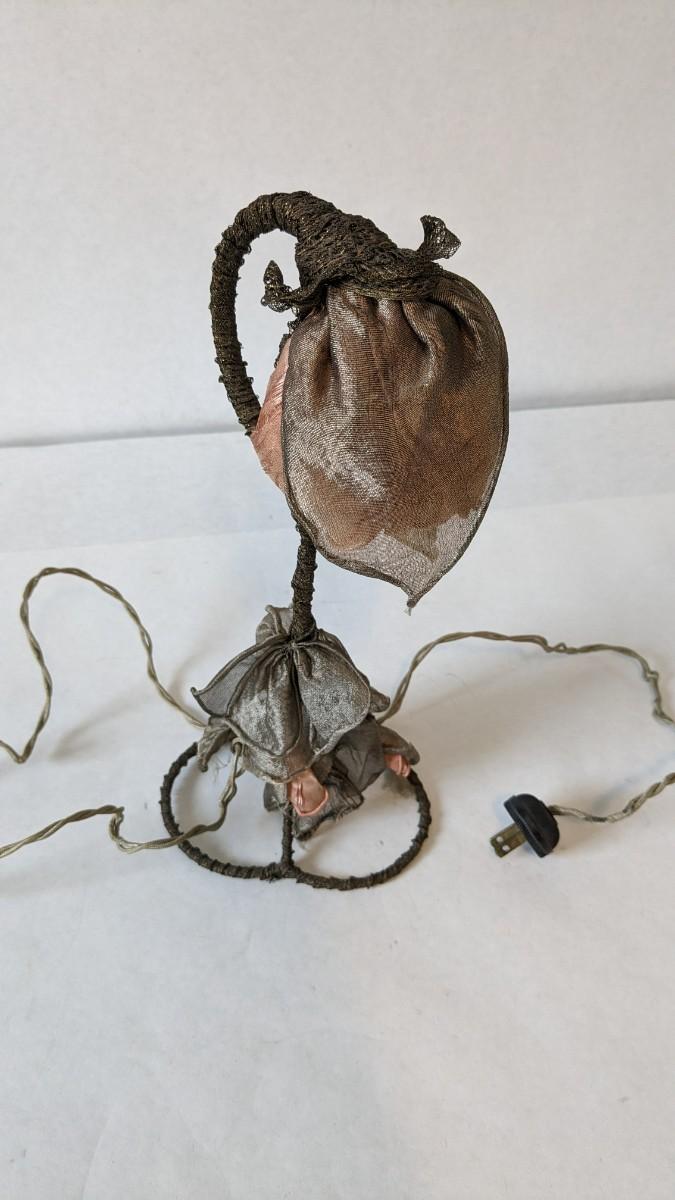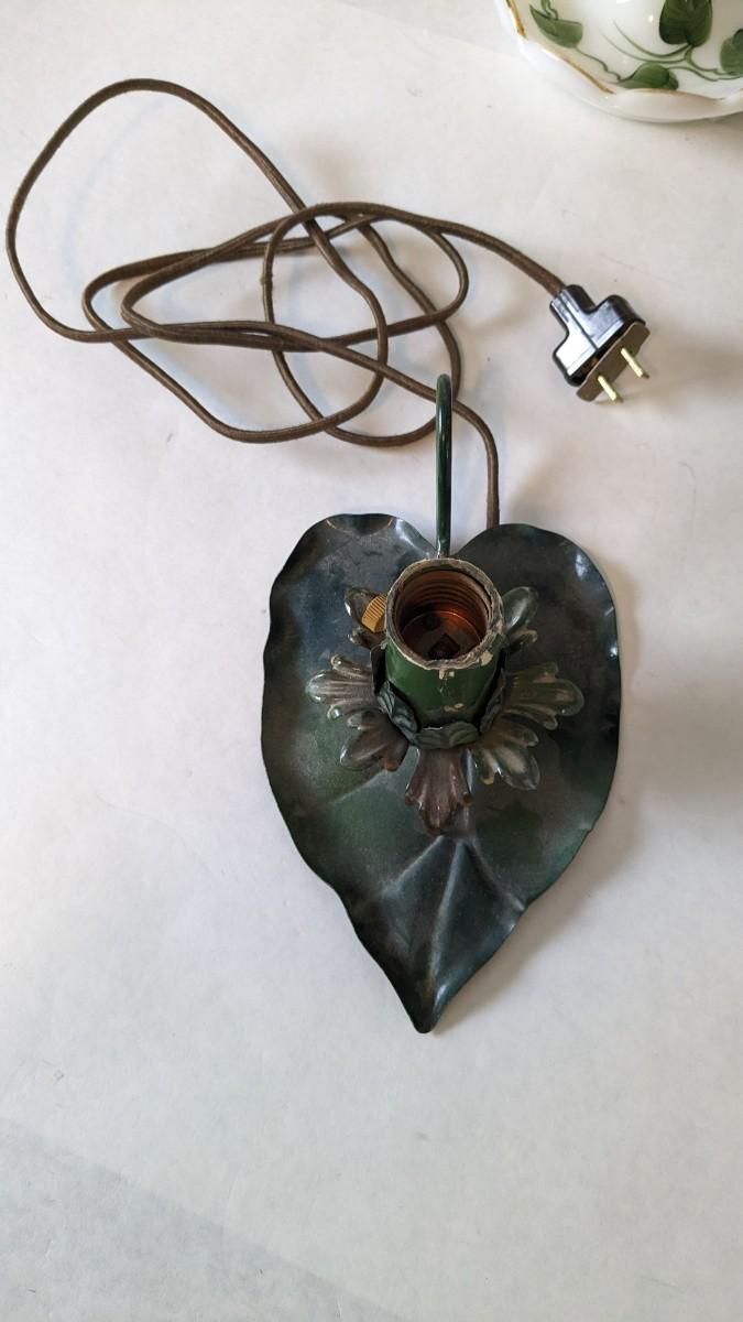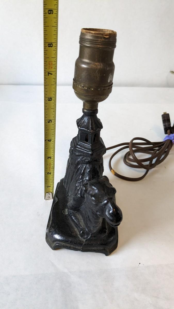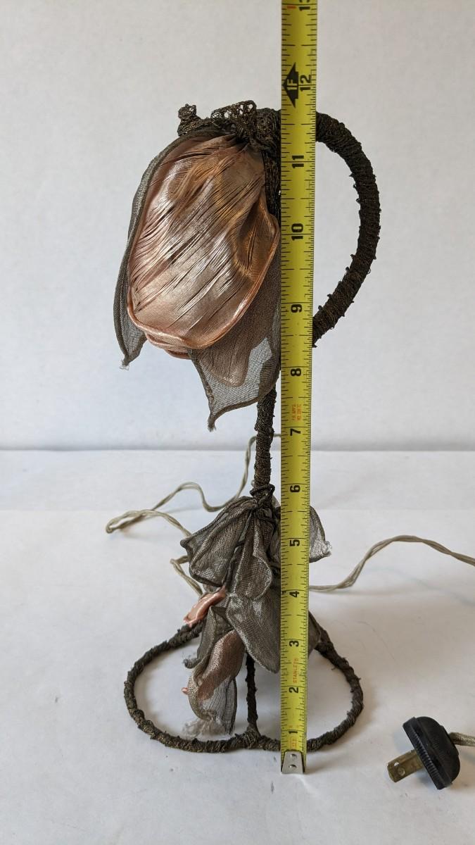 Five varied decade accent lamps including silk wrapped tulip that shows wear, cast iron camel, hand painted milk glass, Ivy leaf, and wood box TV lamp. All cords are in great shape, however new wiring is recommended. Great little assortment