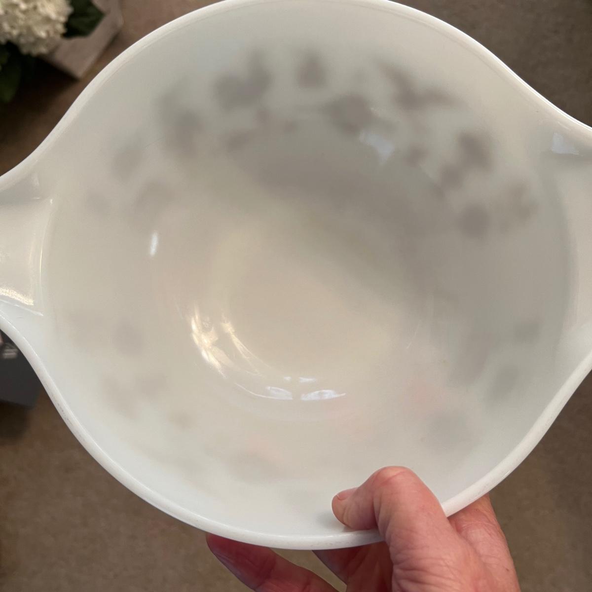These three vintage Pyrex bowls are the Early American Cinderella nesting bowls. There are just a few light scratches on the inside of the largest bowl, see image. This bowl measures 11” D x 4.25”H.