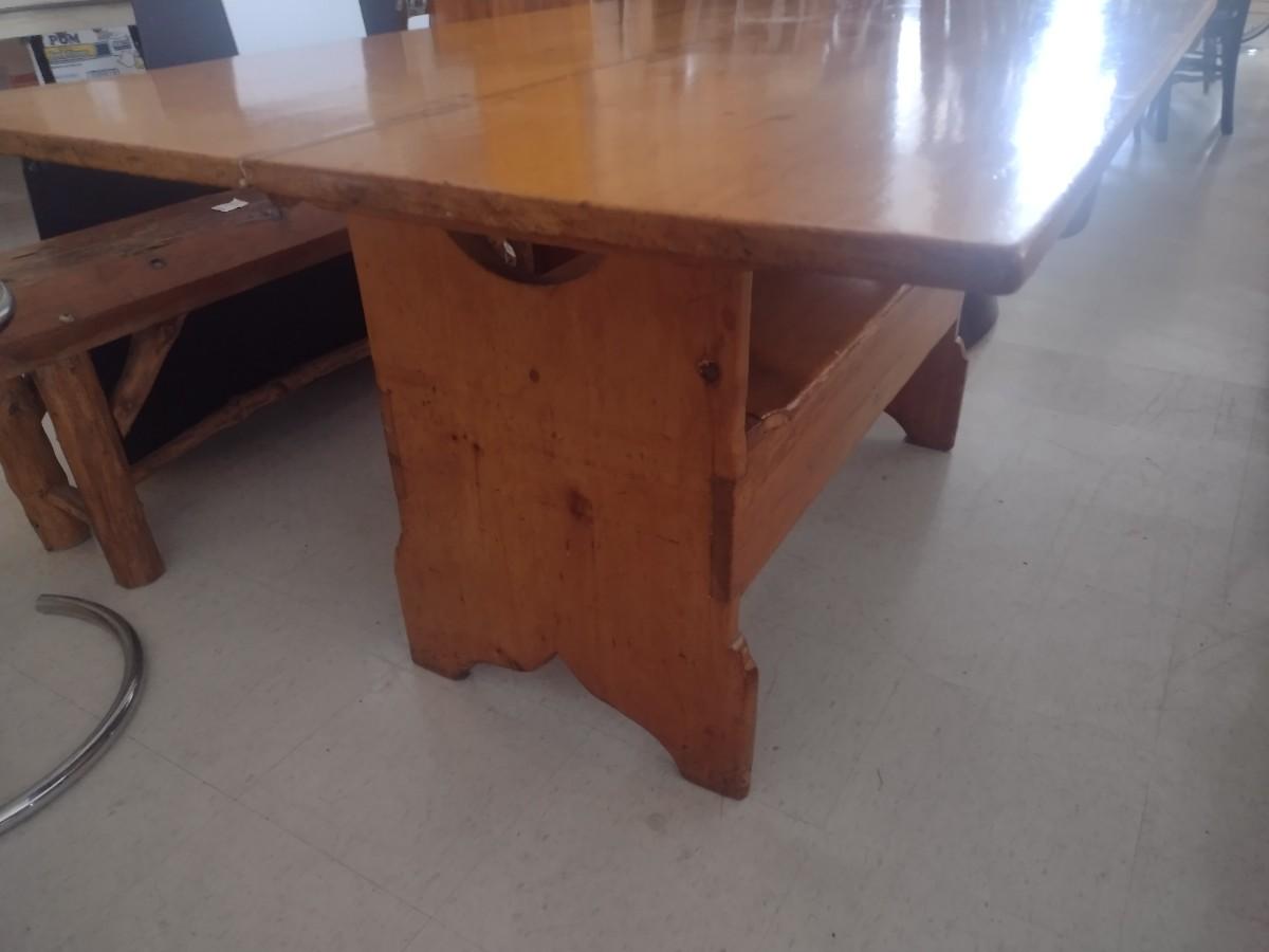 Early American Design Hard Pine Wood Tilt Top Bench Table