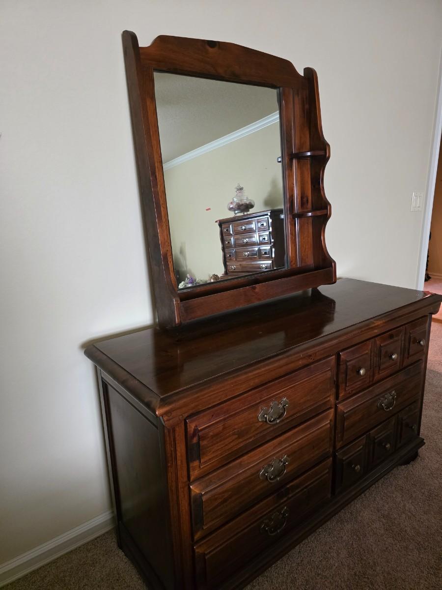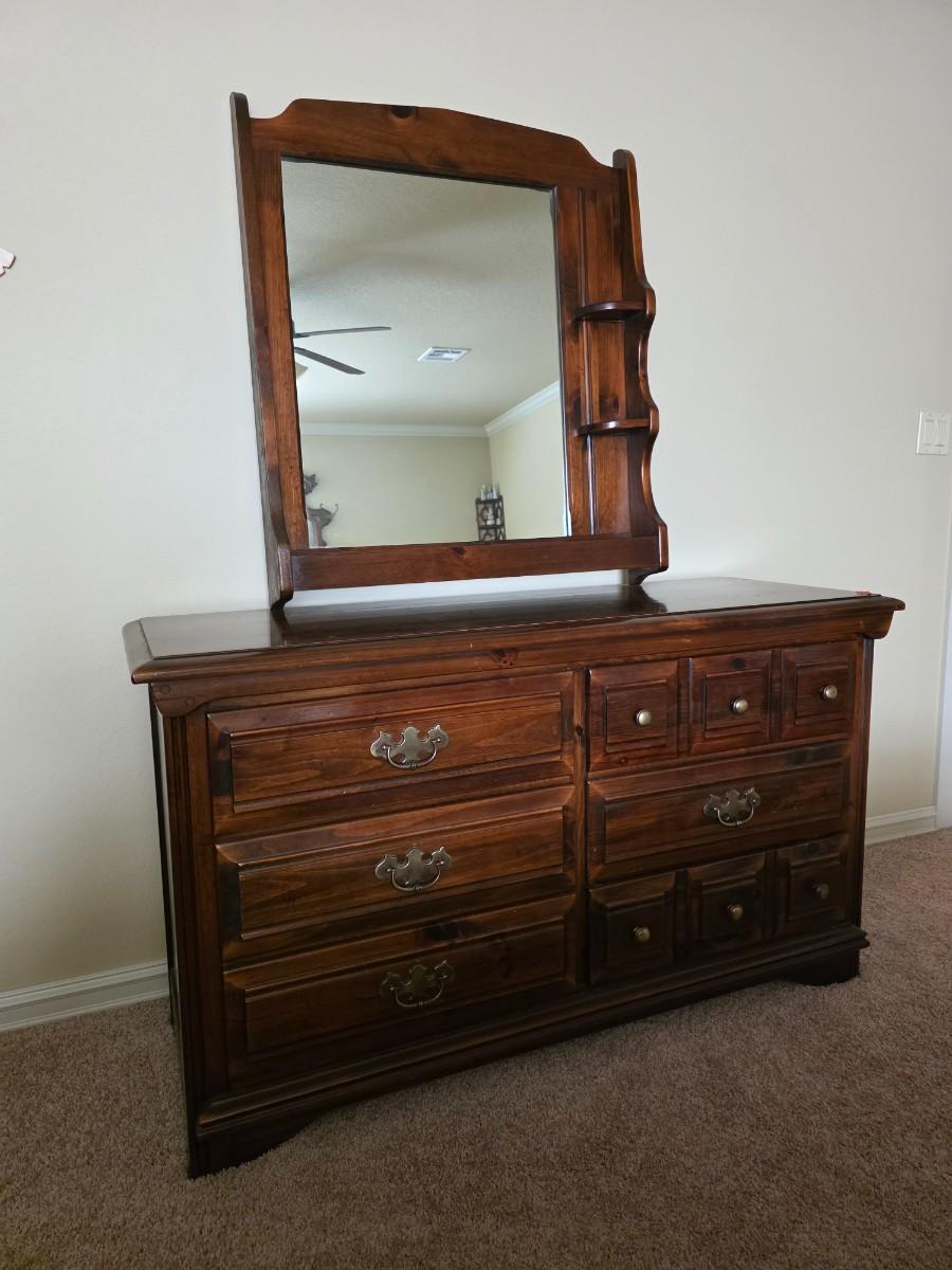 Early American Dresser with mirror. Matches the queen bed in lot 30.