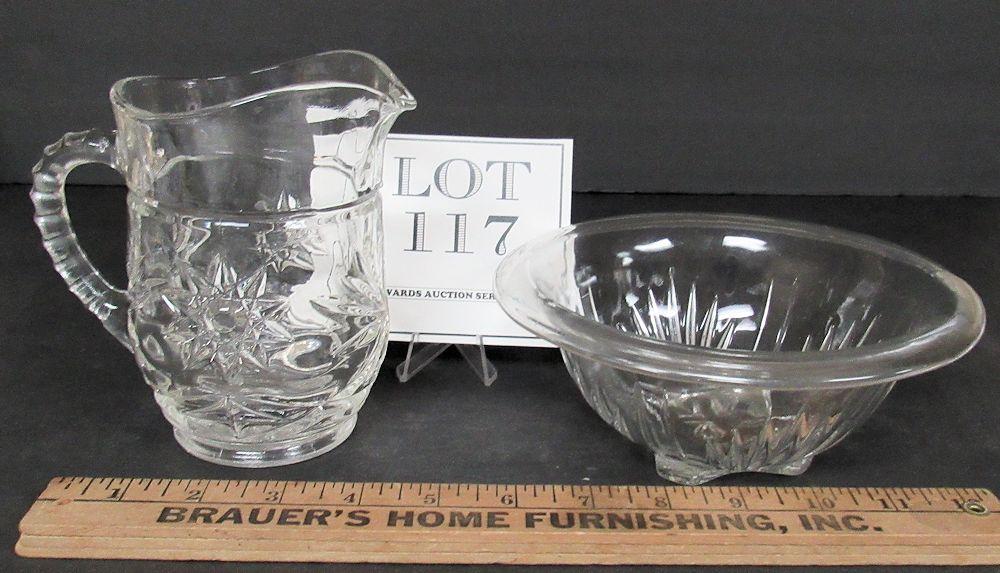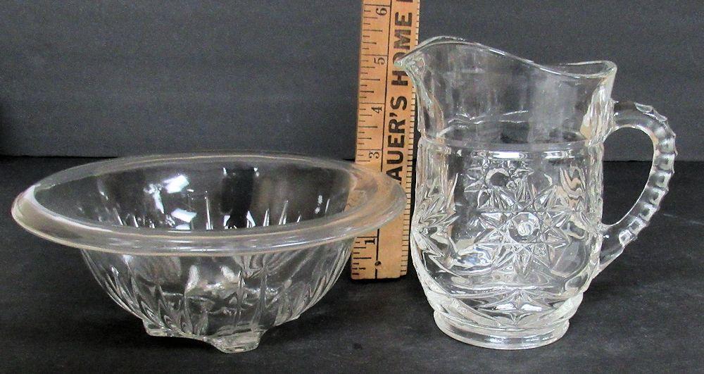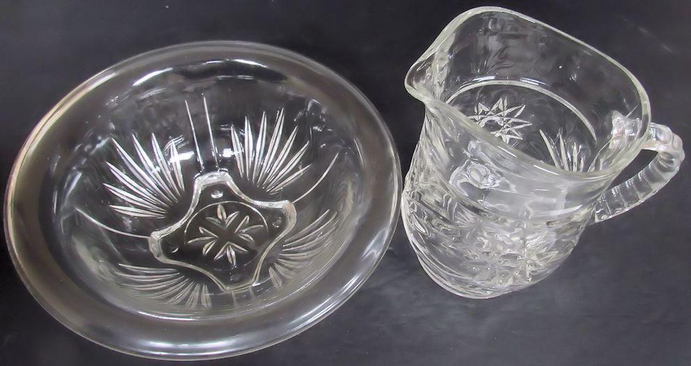 Early American Prescut Small Pitcher and Hazel Atlas Bowl